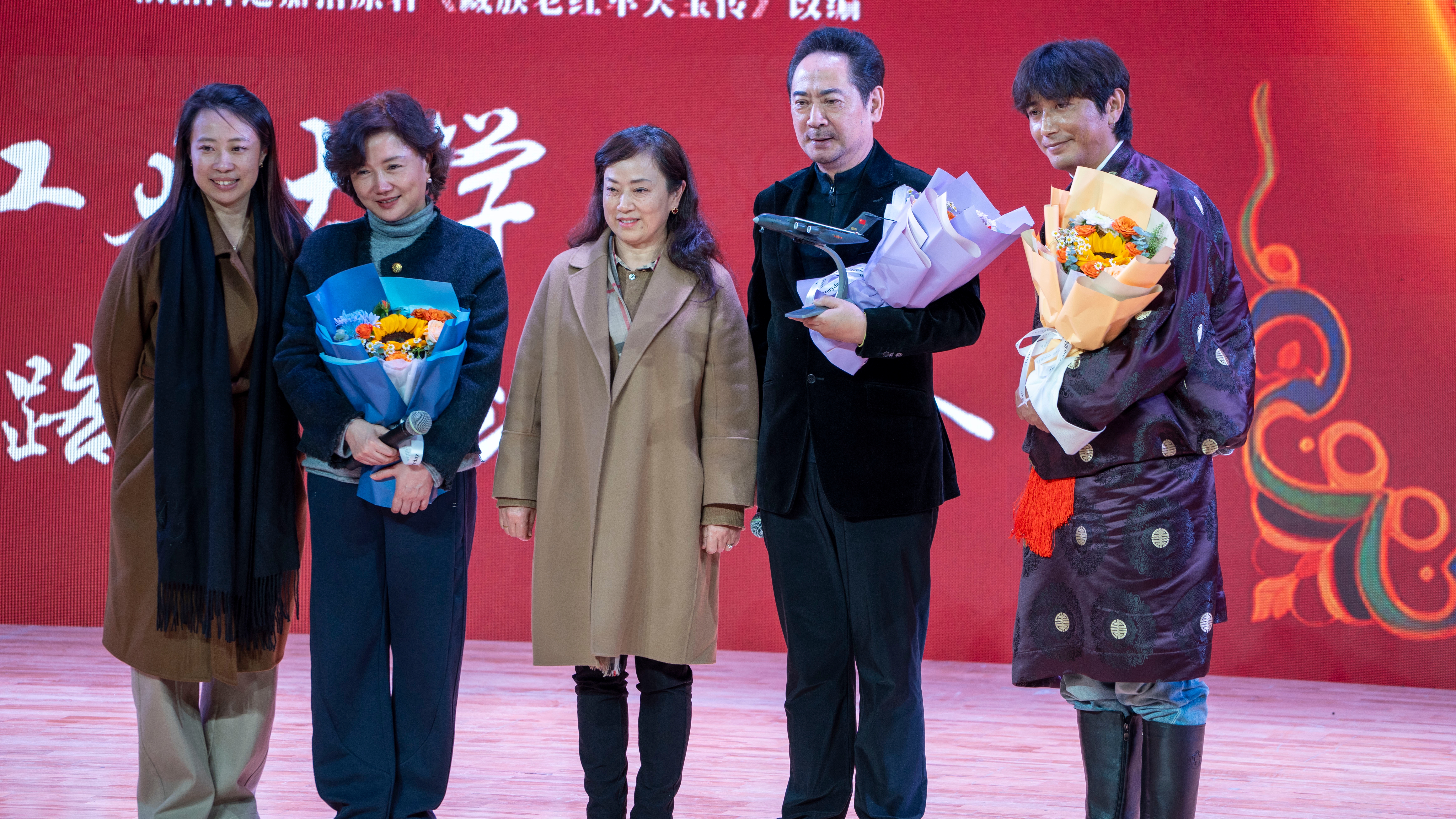 艺术教育中心首席专家刘惠教授、副主任马玥代表学校,向主创团队献花并赠送运-20飞机模型,以表达感谢与敬意。