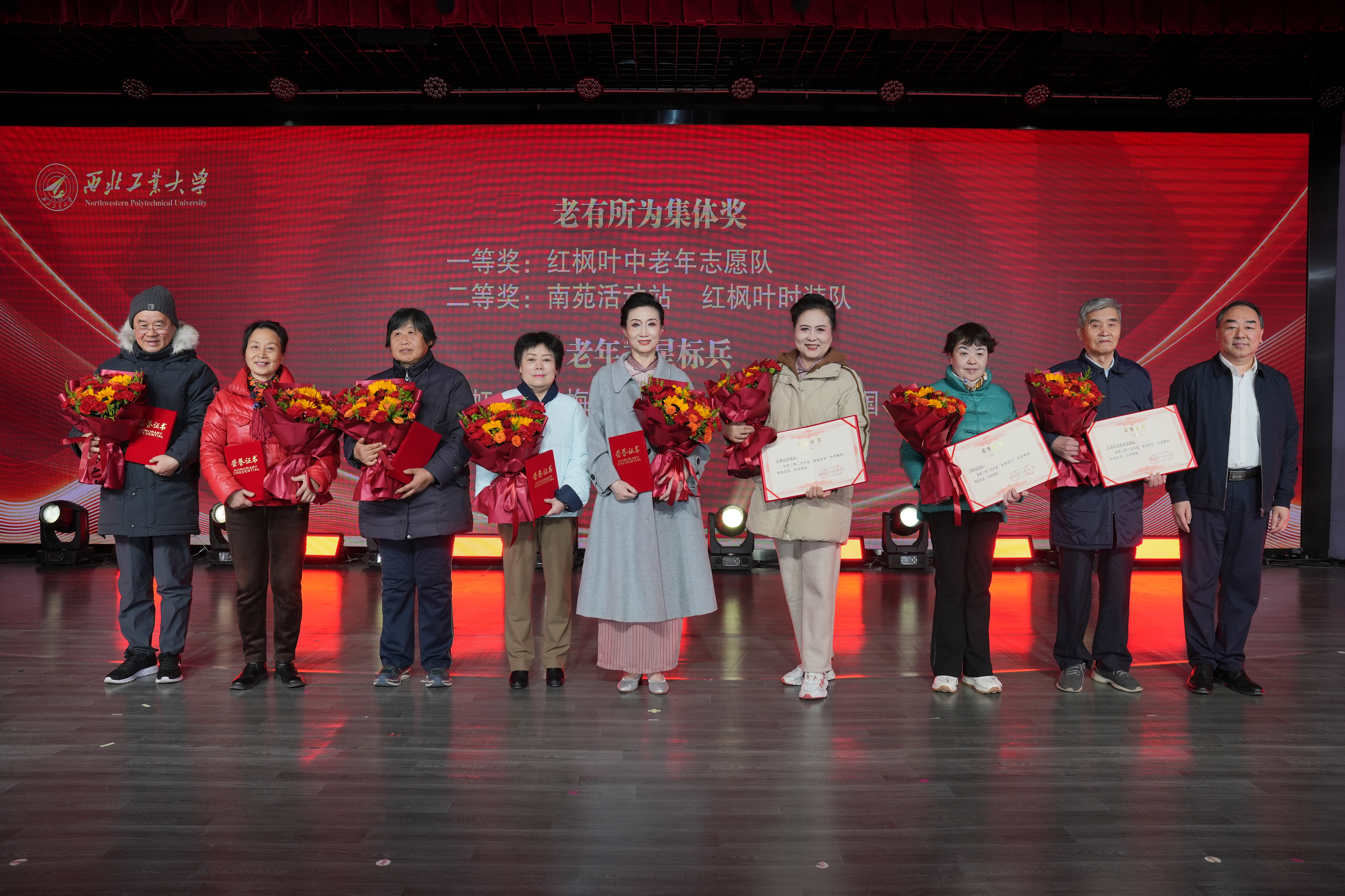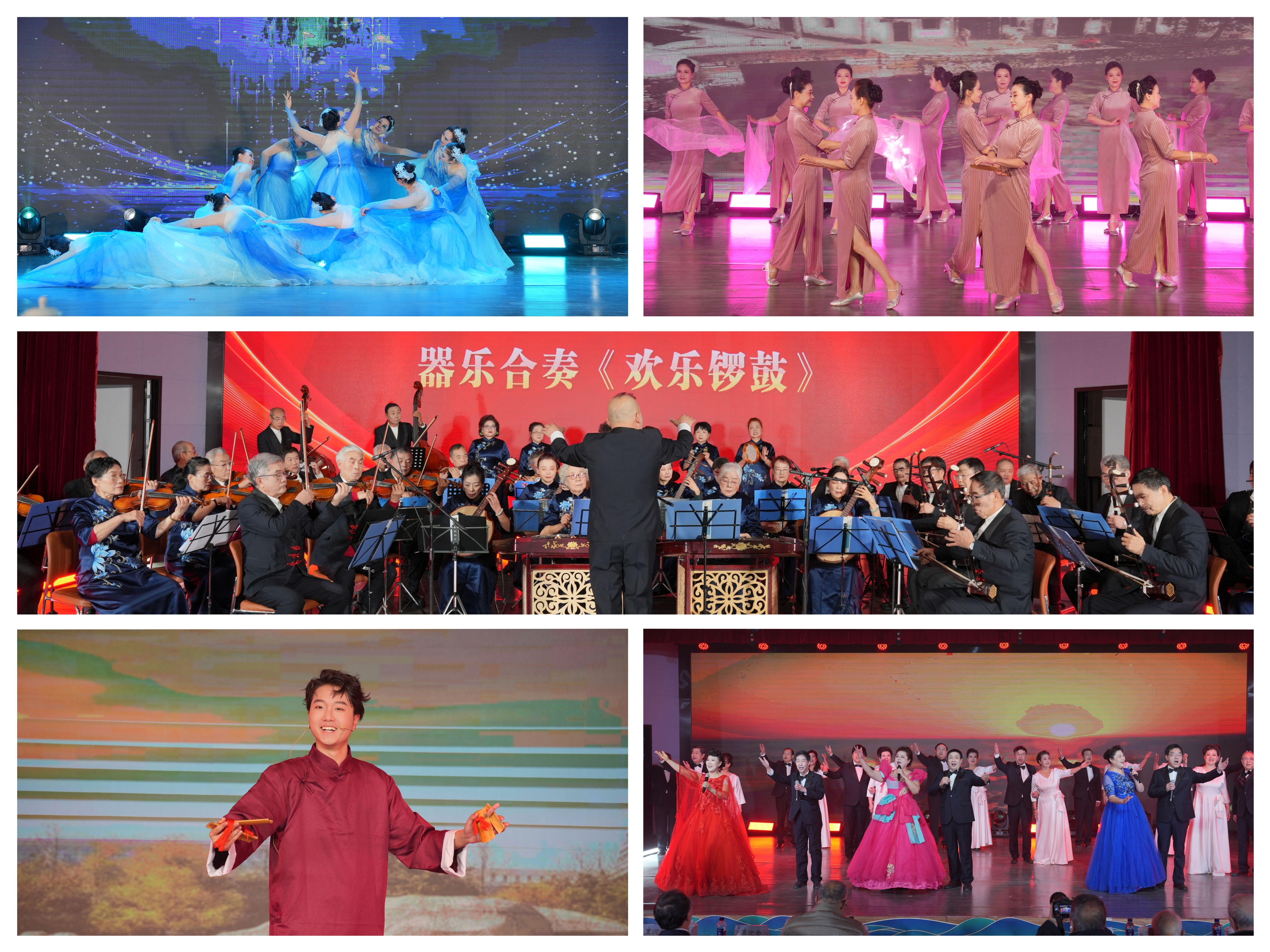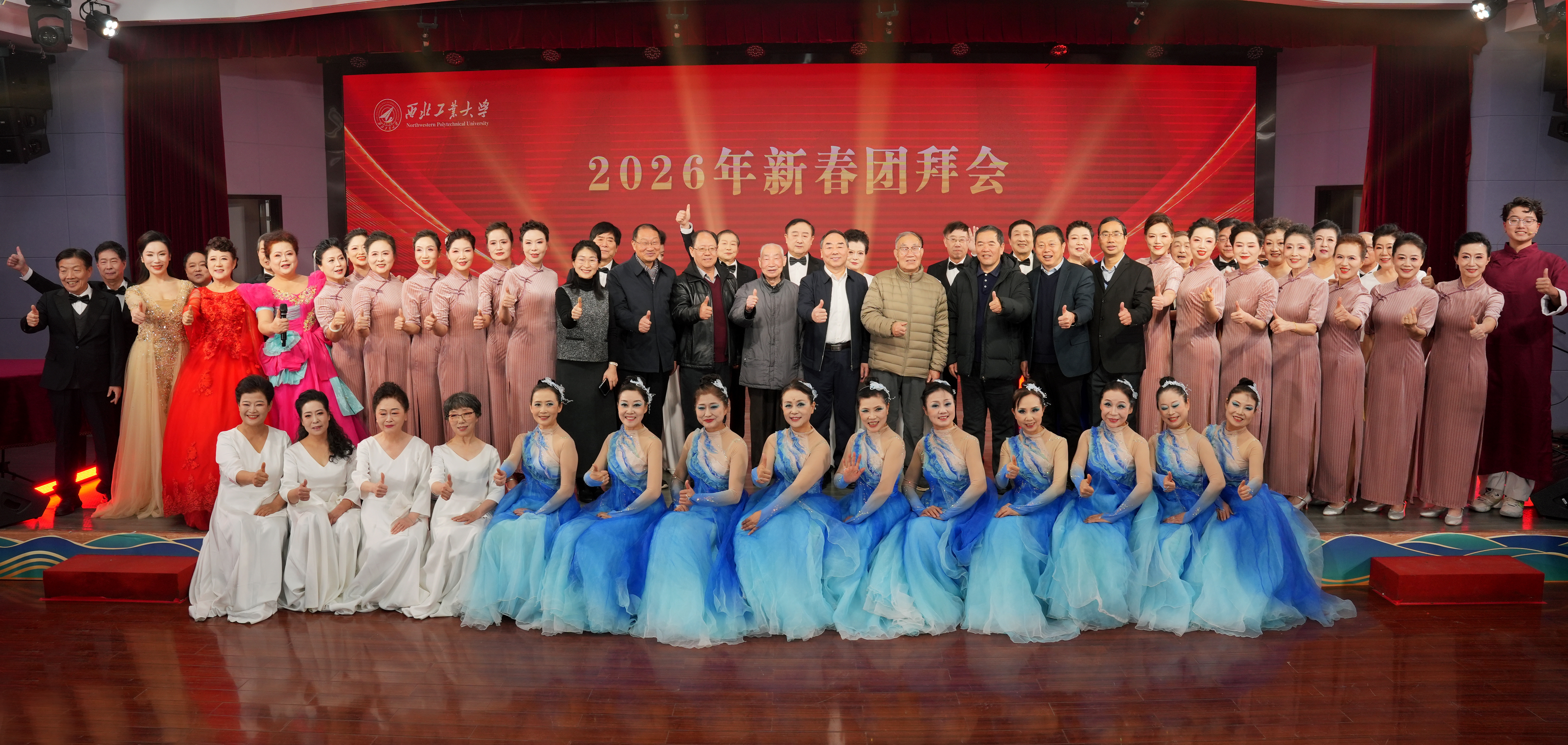 红枫叶艺术团、大学生艺术团的师生们在团拜会上表演了器乐合奏、舞蹈、时装秀、单口快板、合唱等节目,展现了西工大老同志“老有所学、老有所乐、老有所为”的精神面貌,现场气氛欢乐祥和。