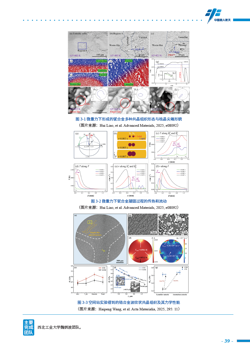 进展报告指出,该研究进展“首次报道了微重力条件下流体驱动的枝晶与共晶生长动力学局域效应,发现获得的共晶组织具有更优异的力学性能,并阐明了其影响机理,为高性能铌合金和锆合金制备工艺优化提供了实验和理论依据。”