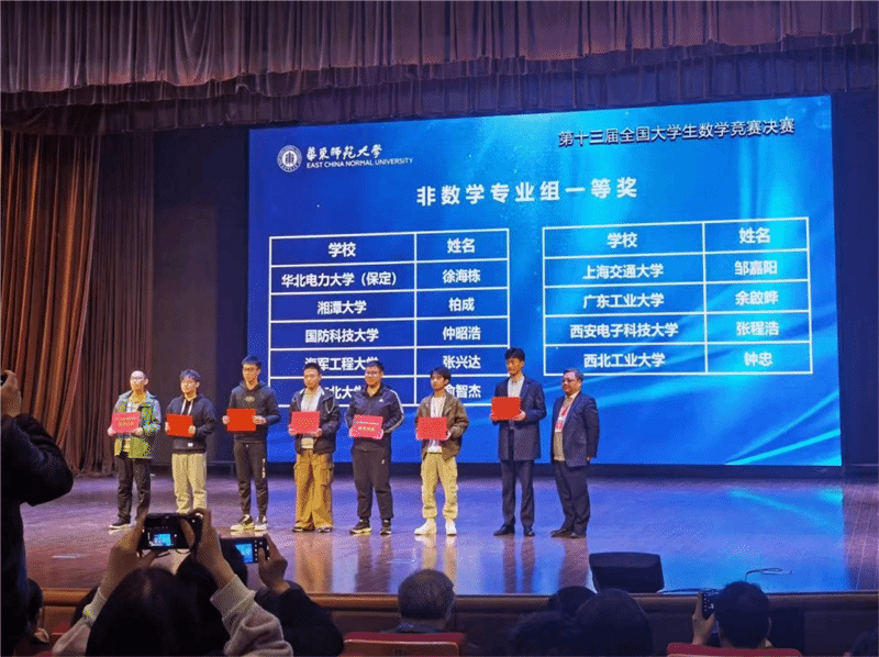 第十三届全国大学生数学竞赛共吸引了21万余名学生参加,最终748名学生经过选拔进入决赛。BEAT365数学与统计学院陈子扬、刘思哲、柳帅臣,软件学院蔡周阳,航天学院钟忠以及航海学院刘允龙共6人以扎实的数学基础、较强的创新能力脱颖而出全部获奖。