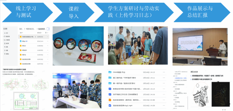 该课程教学团队组建以来,注重在课程实施过程不断总结反思,持续推进课程改革创新,课程内容由传统掐丝珐琅画制作技艺学习,先后融合了激光切割、电子线路增材制造等现代工程技术,并继续探究新材料在掐丝珐琅制作过程的融合方法,努力实现从单一传统技艺传授到艺工融合、思政融合的创新劳动实践的转型升级。该教学团队也随着课程改革深化不断壮大,人员结构持续优化,逐步形成了机械、电子、设计等多学科交叉融合的师资队伍,团队在课程设计规划时精诚合作,集思广益,在课程实施过程各司其职,各尽所能,教学改革取得显著成效,教学效果受到学生广泛好评。