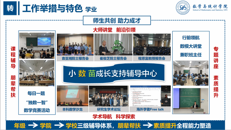 在实现教学能力提升的同时,她积极推动教学改革,充分将教学和科学研究上的优势融入学生工作。她以学业学风建设为重点,以社会实践、志愿服务为抓手,建立小“数”苗学生成长支持辅导中心、“学业辅导站”,实现“师生学习共同体”的构建与运行,形成“年级—学院—学校”三级辅导体系,使学院学生辅导中心实现了从朋辈帮扶到素质提升的全程能力塑造。张莹也积极带领学生参加学科竞赛和创新创业竞赛,荣获大学生数学建模竞赛国际特等奖提名奖3项,一等奖、二等奖共31项,所在的研究生指导团队连续两年获评校十佳“优秀研究生导学团队”。她还联合多个学院建成首批校级辅导员工作室“‘启翔力量’学业领航工作室”,通过服务学生公共基础课程的辅导,实现对学生学业的支持和思想的引领。