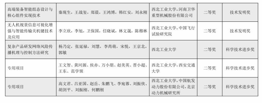 朱继宏教授主持完成的“面向增材制造的材料-结构-工艺特征融合高性能设计理论与方法”,何明一教授主持完成的“复杂目标多视角高光谱联合感知与智能识别的理论与方法”,赵建林教授主持完成的“光场的空间调控及与微纳结构相互作用”分别荣获陕西省自然科学一等奖;宋保维教授主持完成的专用项目,李恒教授主持完成的“高性能管、板构件形性缺陷调控精确塑性成形技术及应用”,苑伟政教授主持完成的“仿秦岭箭竹叶微纳结构疏冰蒙皮”分别荣获陕西省技术发明一等奖。