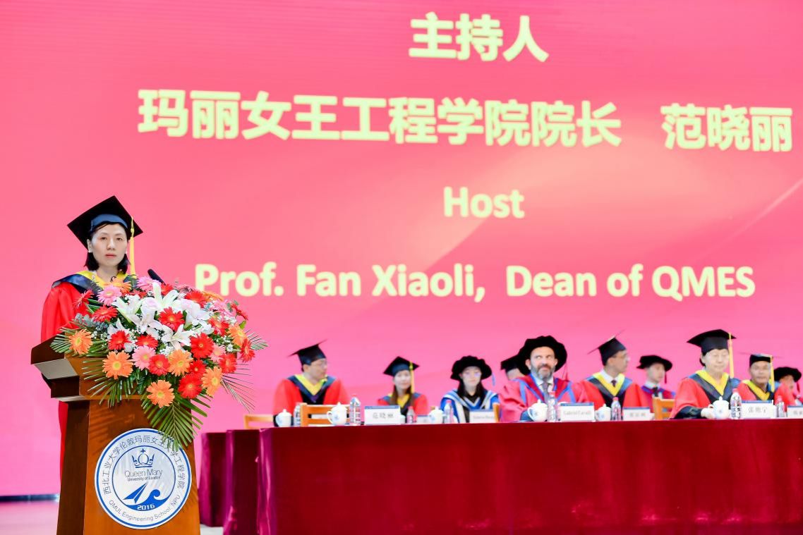 伦敦玛丽女王大学校长Colin Bailey教授在毕业贺词中表示,能第一次亲临典礼现场和同学们一起庆祝圆满毕业非常高兴。他对全体QMES教职员工、学生及其亲友表示感谢。他指出,合作、沟通与协作是克服全球共同挑战的关键因素。玛丽女王工程学院始终坚持融合中英双方高等教育的精髓,为学生提供优质的国际化本科教育。他强调,作为中外合作办学模式下成长的学生,大家拥有独特且强大的复合型能力,希望同学们在中国或未来工作和生活的地方,为社会发展做出积极贡献。在未来的几年中,伦敦玛丽女王大学将和大家保持联系,帮助大家充分利用伦敦玛丽女王大学校友会的资源,通过全球校友网络,建立新的联系,持续发展和提升职业生涯。