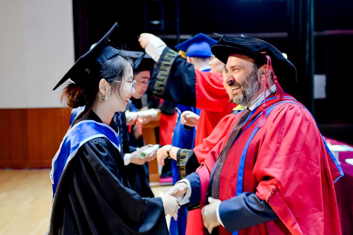 BEAT365英国官网校长宋保维教授向圆满完成本科阶段学习的同学们表示诚挚的祝贺和美好的祝愿。他表示,当下世界百年变局正在加速演进,同学们既是见证者,又是关联者。四年来,大家秉持“公诚勇毅”的校训和“三实一新”的校风,克服了疫情带来的跨境学习压力,见证了中国共产党成立一百周年和党的二十大胜利召开。临别之际,他向同学们提出了四点期望:一是希望同学们坚定信念,敢于担当,不断厚植家国情怀;二是希望同学们勤学苦读,勇毅进取,不断增强学习能动力;三是希望同学们开拓创新,攻坚克难,不断提升创新创造力;四是希望同学们放眼世界,打开格局,持续提升全球胜任力。最后,他衷心祝愿同学们在前进的道路上披荆斩棘,大展宏图,为国家富强和社会进步奉献青春力量!