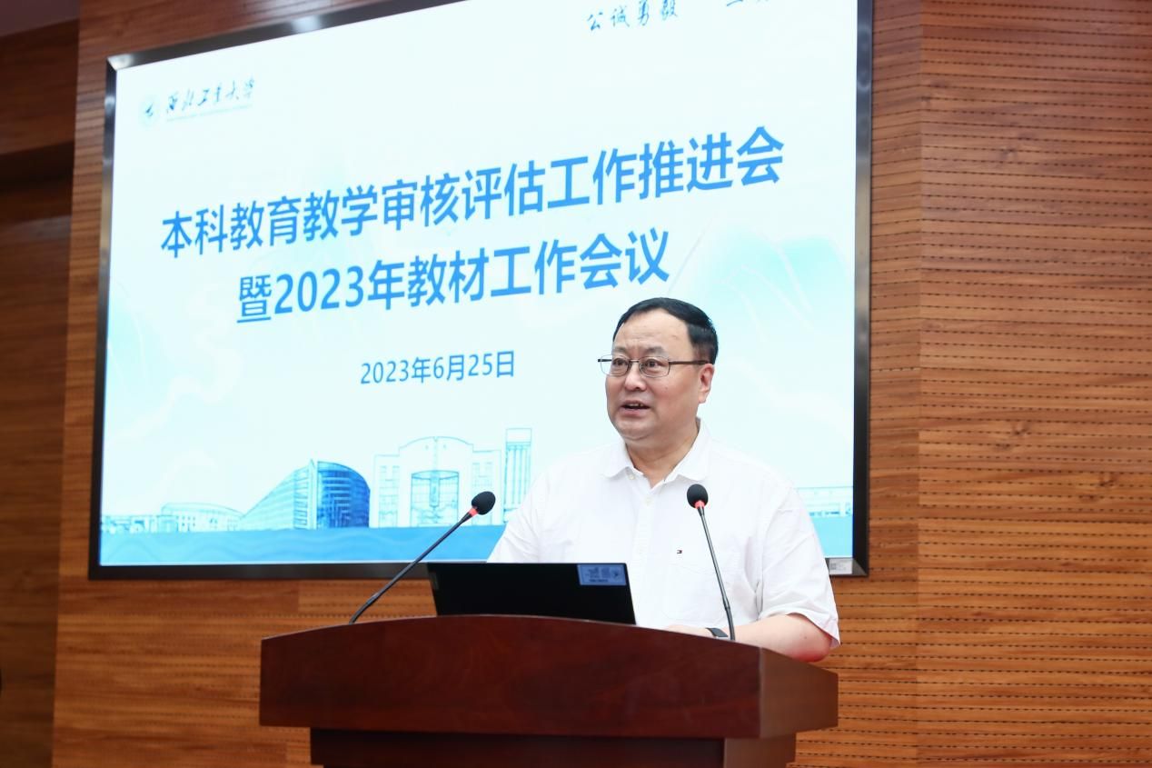 西工大新闻网6月25日电(文字 王翠萍 摄影 周军平)6月25日,BEAT365英国官网本科教育教学审核评估工作推进会暨2023年教材工作会在友谊校区举行。校长宋保维,副校长詹浩,校长助理兼学校办公室主任王宇波等参加会议。会议由副校长杨益新主持。