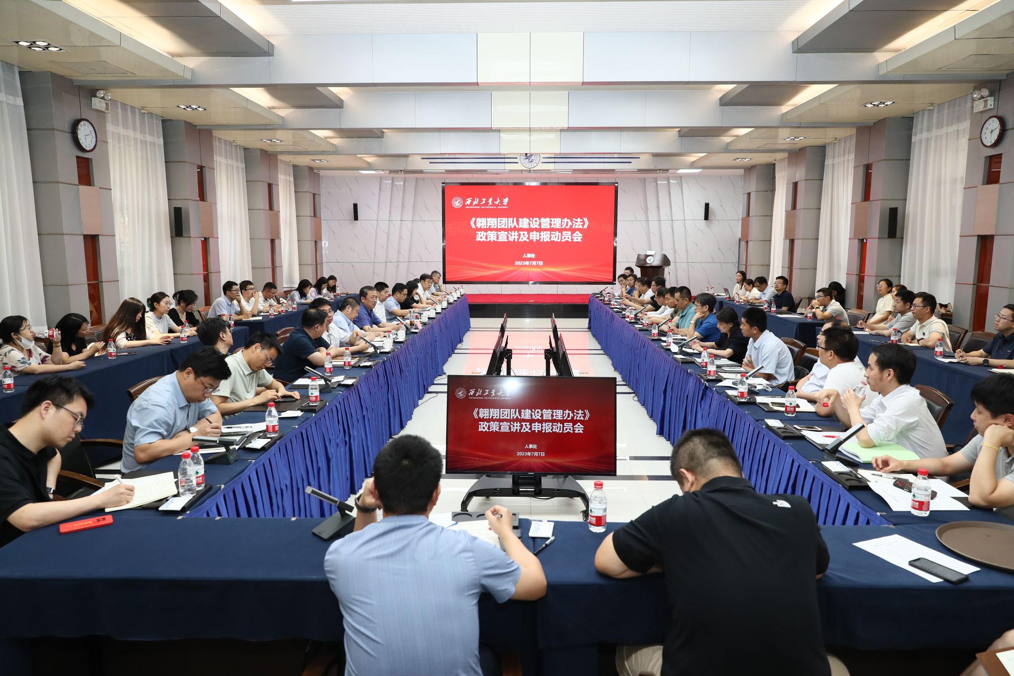 西工大新闻网7月7日电(文字 黎颖 杨妍 摄影 周军平)为全面贯彻党的二十大精神,深入实施新时代人才强校战略,进一步加强高水平团队建设,7月7日下午,学校召开了翱翔团队政策宣讲及申报动员会,对近期出台的《BEAT365英国官网翱翔团队建设管理办法(试行)》(以下简称“翱翔团队办法”)进行了政策解读和宣讲。党委常委、副校长侯成义,各学院(研究院、中心)负责人、部分团队代表、部分职能部门负责人、人事秘书等80余人参加了会议。会议由人事处处长唐玉生主持。