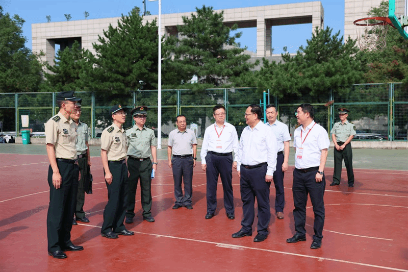 宋保维一行来到星天苑操场检查2021级、2022级军训情况并慰问火箭军工程大学帮训教官及校内参训干部。他对帮训教官们的辛苦付出表示衷心感谢,并勉励参训干部要以饱满的热情投入到训练当中,对参训学生既要规范要求、科学施训,也要及时了解学生训练时的身体健康情况和思想动态,教育引导学生磨炼意志、练就本领,为今后的学习和生活打下坚实基础。