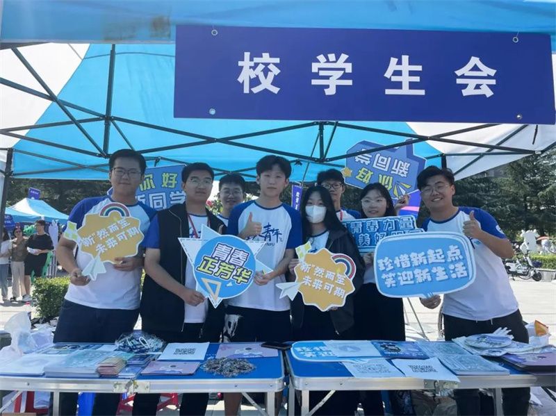 报到现场还为师生家长们准备了酸梅汤等饮品补给。部分学生团体也准备了形式多样的互动环节,期待各位萌新前来打卡~~
