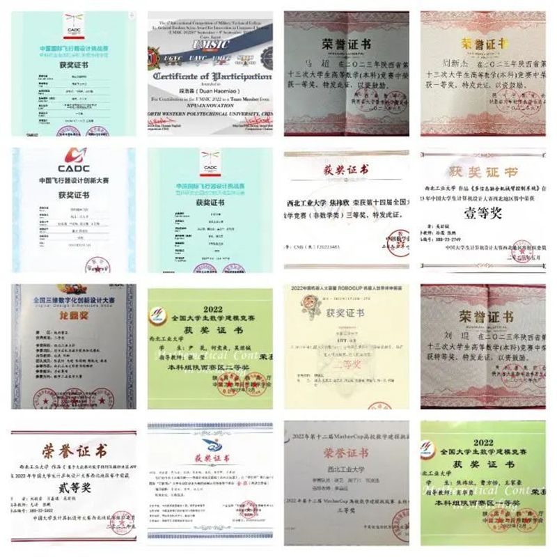 在各类型科研竞赛中,班级同学取得省部级以上奖项24项,展现出新时代的工大学子风采。在基础学科竞赛中,张凌逸、刘海瑶等多位同学多次在包括全国大学生数学大赛、全国大学生英语翻译大赛、国际数学大学生建模竞赛等竞赛中获奖;在工程创新方面,马超、段浩淼等多位同学在世界无人军事系统大赛、全国三维数字化创新设计大赛等顶级赛事中屡获奖项;在创新创业大赛中,吴朋铖同学连续两年荣获互联网+创新创业大赛陕西省金奖。