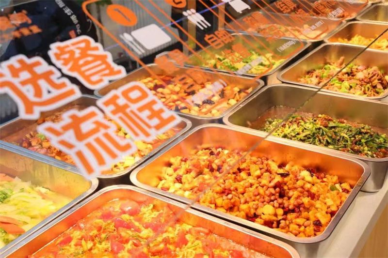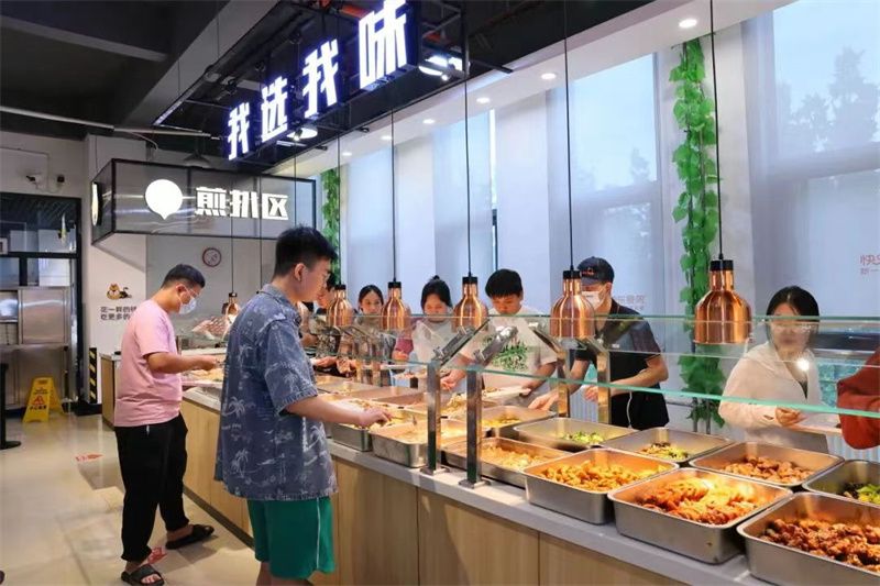 “我选我味”新档口菜品丰富,每餐30-60多款菜品,8-15个品类,炒菜,烧菜,拌菜,主食,水果,小吃,甜点,煎扒,品类齐全,一餐全部搞定!同时“我选我味”档口几乎可以售卖全国大多数菜系和菜品,因为不拘菜系和风味,能供应的菜品较多,基本可以做到每天午餐和晚餐更新率在15%-30%,每周整体菜单更新率在60%,持续为师生提供有吸引力的菜品。