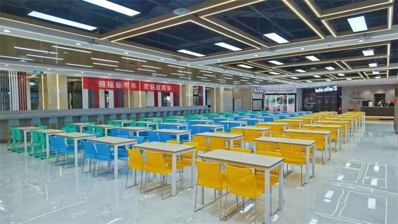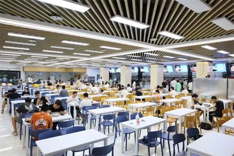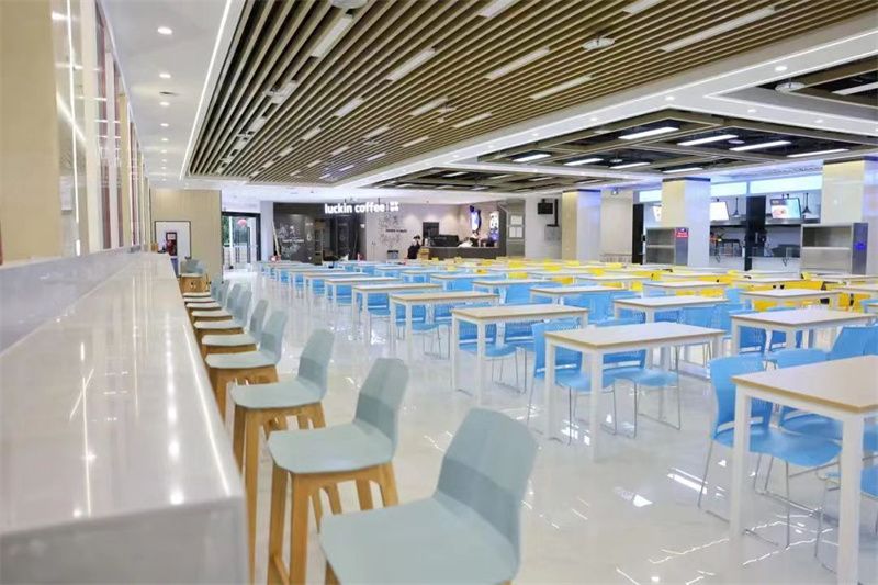 宽敞热闹的大厅区,舒适安静的沙发区,独立的高脚凳就餐位,满足师生多元化的用餐体验;餐厅就餐区域放置了多款绿植,不仅能营造良好的就餐氛围,还有效地改善了餐厅的空气质量,使同学们在用餐时感受被大自然环绕的美妙;另外在就餐区还增设了智能共享充电宝借还点,师生再也不怕在餐厅里“掉线”。