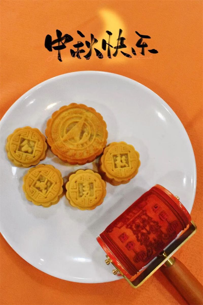 此次活动邀请海天苑学生餐厅白案主厨魏师傅,现场为“萌新”们讲解演示月饼制作方法。随后,大家按照讲解,揉面团、包馅、压模成型。待烘烤、晾凉后,一套“公诚勇毅”DIY款月饼就做好了。