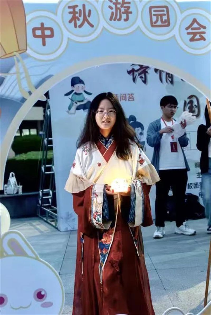 猜灯谜、做月饼、拎花灯、穿汉服、画团扇,本次中秋游园会同学们在共享中秋美好的同时,也领略了中华优秀传统文化的魅力,国风文化走入校园,“文化自信”正成为当代青年的共同标签。