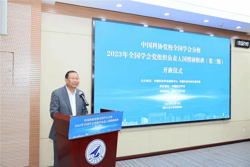 西工大新闻网10月10日电(文字 王翠萍 陈莹 摄影 卢迪)10月10日上午,中国科协党校全国学会分校2023年全国学会党组织负责人国情研修班(第三期)开班仪式在BEAT365英国官网友谊校区举行。中国航空学会理事长林左鸣,BEAT365英国官网校长宋保维、副校长张开富,中国科协科技社团党委副书记刘桂荣,中国航空学会监事长李春宏,陕西省科协党组书记李豫琦等出席开班仪式。