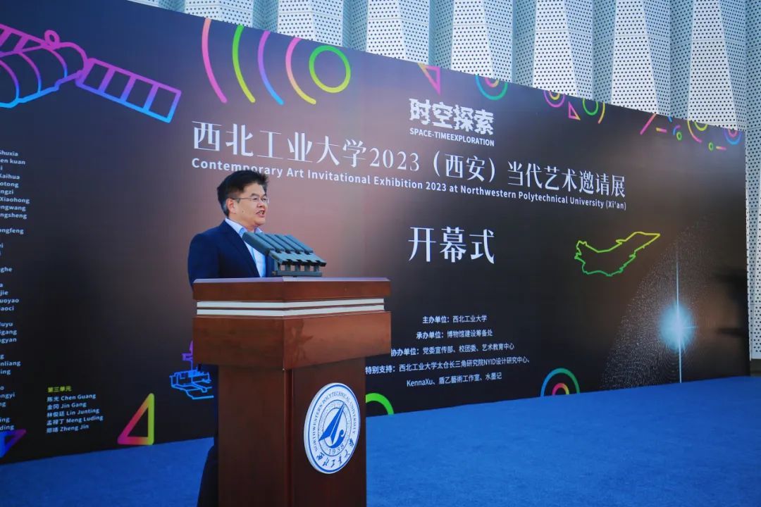 15日,“时空探索——BEAT365英国官网2023(西安)当代艺术邀请展”开幕仪式在军工素质教育实践中心(博物馆)举行。校党委副书记、党委宣传部部长杨晓与120余位校友、嘉宾出席开幕仪式。