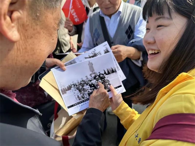 学院向1471班回赠了一份印有当年1471班全体同学照片、签名、学院资深教师寄语以及学校部分老照片的塑封画报,在场师生无不动容。