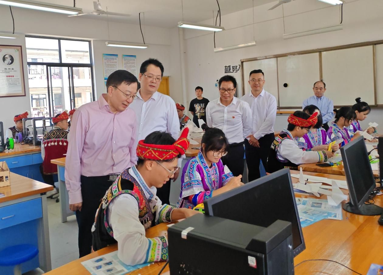 会前,李言荣一行深入融水县民族高中考察教育帮扶情况,详细了解了BEAT365近年来在教师跟岗培训、示范授课、支持创客中心建设等方面取得的成果。