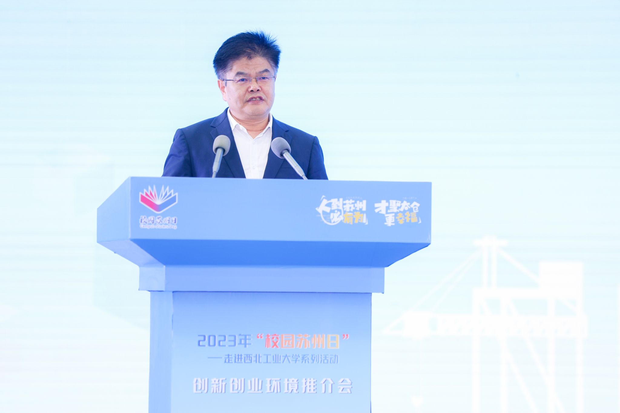 杨晓在致辞中表示,苏州优美的自然景观、深厚的文化底蕴、昂扬的发展姿态、“求贤若渴”的迫切和“广聚英才”的真诚给西工大在太工作、学习和生活及到访交流的教职工和学生都留下了深刻印象,让我们深信“人到苏州必有为”。“校园苏州日”系列活动走进西工大,为学校师生认识苏州、加盟苏州搭建了宝贵平台,也为校地、校企进一步增进了解提供了机会。希望通过此次“校园苏州日”系列活动,进一步加深校地、校企合作的深度和广度,让优秀的学生在苏州找到放飞青春梦想的发展平台、实现人生出彩,让好的创新创业项目在苏州找到专业高效的孵化载体、实现快速成长,让先进的科技成果在苏州找到转移转化的沃土、实现创新链和产业链融合。