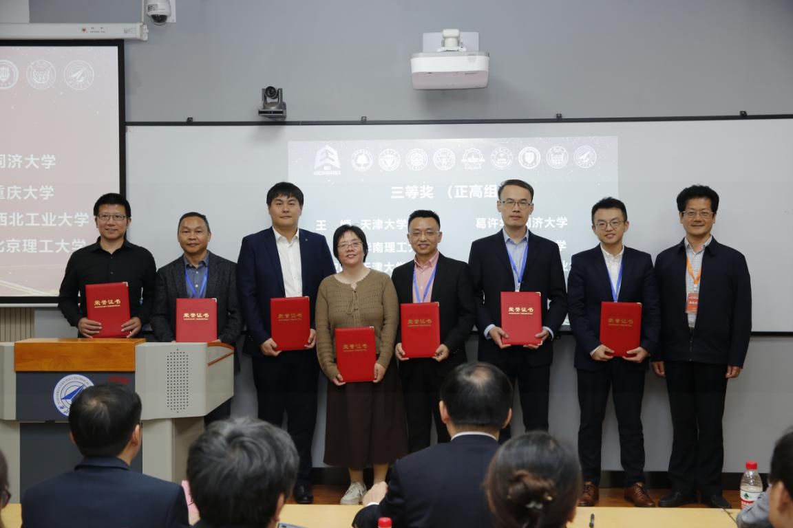 二等奖部分获奖教师合影,郑烨副教授(右三)登台领奖