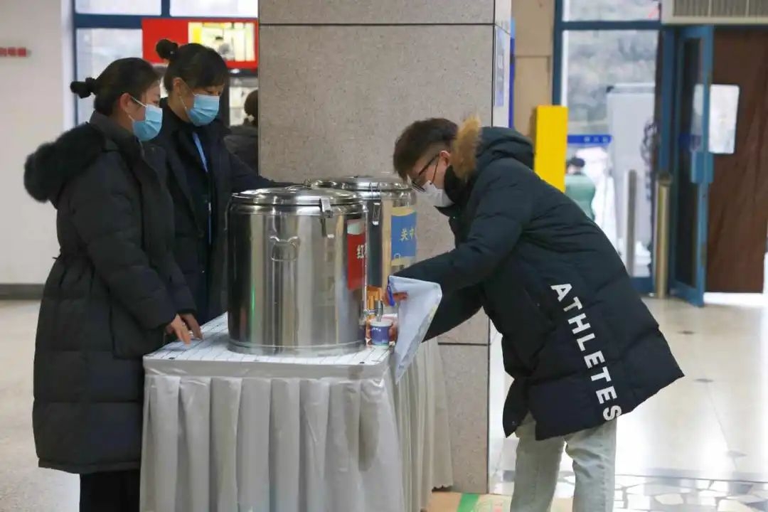 学校还在考场内外均设有服务台,红糖姜汁、茯茶足量供应,为考生们送上暖暖的祝福和鼓励。天寒地冻,热饮暖胃暖心~
