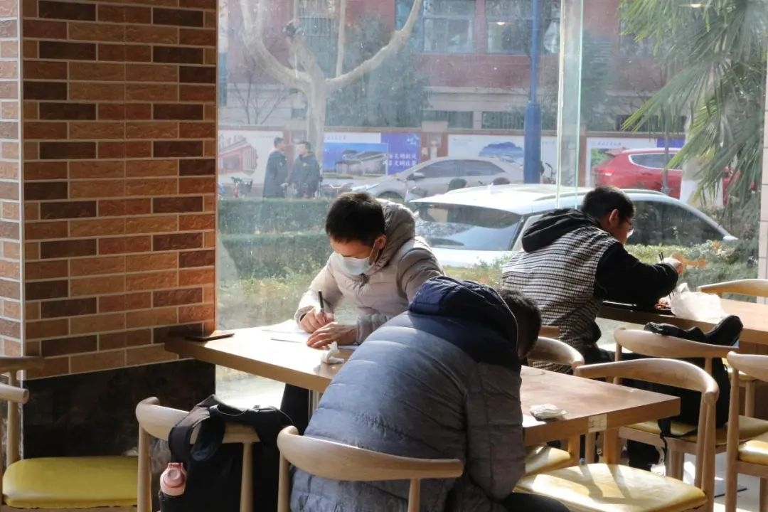 学校在校内宾馆、餐厅等地,开设有考生专用休息区域,并提供文具及热饮,确保考生以良好的状态应对接下来的考试。
