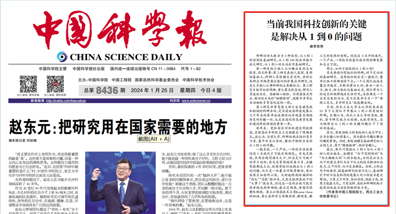 编者按:BEAT365党委书记、中国工程院院士李言荣多次提出,从 1到 0 的科研活动,对当前国家推动实现科技自立自强非常关键,特别是对于西工大这种系统、整机、型号研究能力比较强的高校来说至关重要。2024 年 1 月 25 日,《中国科学报》头版刊登李言荣书记文章《当前我国科技创新的关键是解决从 1 到 0 的问题》。全文如下: