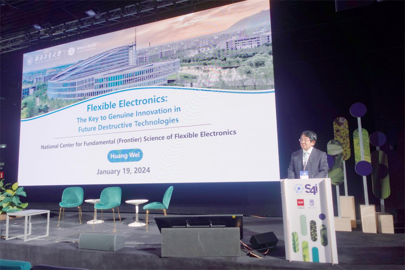 黄维院士受邀做题为“柔性电子:未来颠覆性技术创新的关键”的主旨报告,介绍了颠覆性技术的发展路径、柔性电子技术和产业的重大突破、柔性电子团队及其重点科研成果,和柔性电子产业未来发展的机遇与挑战。在提问环节,黄维院士阐述了柔性电子等颠覆性技术的发展对于实现新质生产力的重要意义,向观众介绍了在新时代国际合作背景下,中国倡导并践行开放、公平、公正、非歧视的国际科技合作理念,坚持“科学无国界、惠及全人类”,愿意携手构建全球科技共同体。中国高等教育和研究机构也愿意敞开大门,开放合作,共同为构建人类命运共同体做出努力。黄维院士的报告和回答引起了全场热烈的反响。