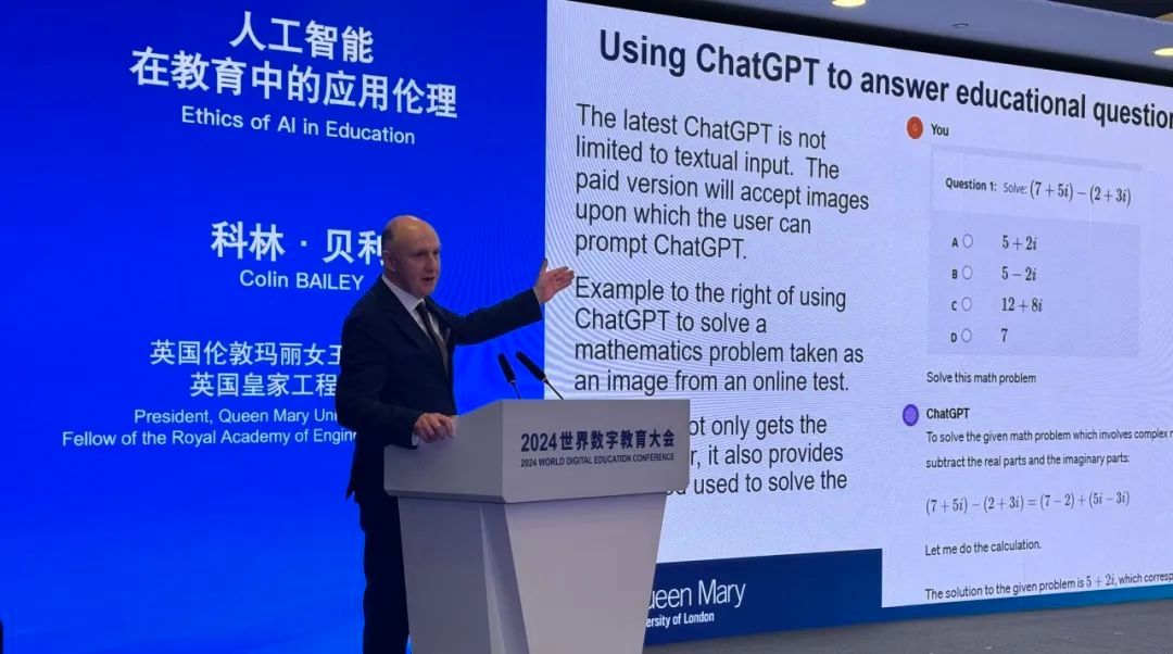 1月30日,2024世界数字教育大会在上海开幕,大会由教育部部长怀进鹏主持,伦敦玛丽女王大学校长、英国皇家工程院院士Colin Bailey教授受邀参会并做主旨发言。