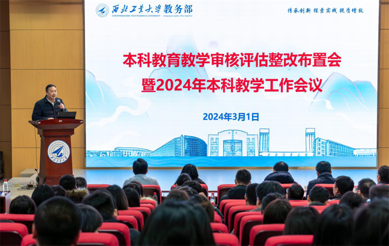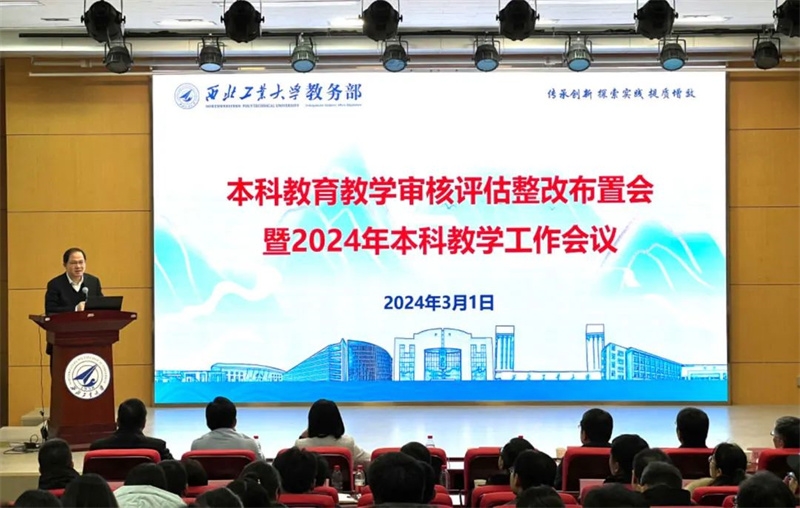 王海鹏首先介绍了教育部审核评估整改工作要求、专家组的反馈意见以及整改方案的研究制定情况,要求相关单位要以问题清单为主线,结合工作实际情况做好任务分解、落实责任人,并按整改时间周期落实每一项整改任务,确保整改取得实效。随后,王海鹏汇报了2023年本科教学取得的主要进展,分析了目前面临的新形势新问题,从“总师育人文化”再挖掘,审核评估整改,生源质量再提升,培养方案优化,专业、课程、教材、平台建设,教学改革,成果奖培育,教学竞赛模式改革,实践教学体系改革,本研一体化教学运行保障,课堂教学质量提升,拔尖创新人才培养等方面全面部署了2024年本科教学工作。王海鹏表示,2024年要按照教育、科技、人才三位一体总体要求和“127”发展目标,坚持“强特色、筑高峰”的总基调,抓好“总师育人文化”在人才培养各环节的全面贯彻落实,不断提高以“总师”型人才培养为引领的人才培养质量,为续写新时代人才培养新篇章积蓄新动能、奠定新基础、做出新贡献!