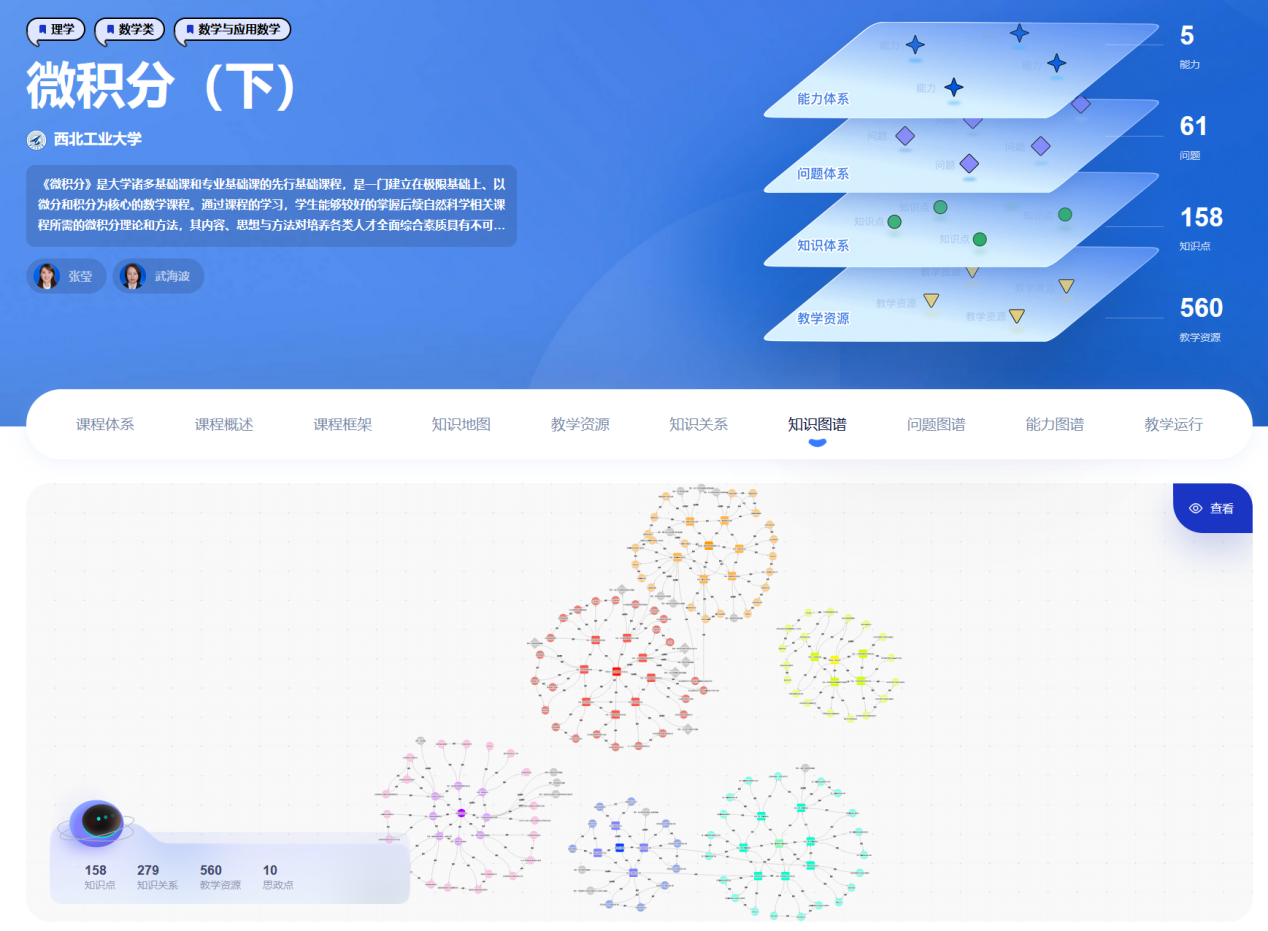 一流课程推动信息技术与教育教学融合创新。3月4日,由学校数学与统计学院张莹教授团队精心打造的首门基于“课程知识图谱+AI”形式的新形态数字化课程—《微积分》正式在智慧树平台上线并投入教学运行。相较于传统课程,新形态数字化课程使学生的学习路径更加多元化和个性化,评价方式更注重过程性学习数据反馈。同时,可针对不同的班级、不同层次的学生建立相应的课程版本,每个版本课程由教师依据班级情况自主组建知识体系,及时调整教学重难点及教学方法,并利用人工智能技术为学生知识点的学习提供精准的学习资源和强大的自适应练习系统,满足不同学生多元的学习需求。张莹教授的《微积分》AI课程以知识图谱为核心,以结构化形式描述微积分知识点、教学资源、教学活动、测评方式之间的关系,具有知识管理、学习导航、学习评估等功能。该课程还引入了具备强大的文本理解、生成能力和资源检索能力的智能教学助手,可以帮助教师及学生创造更多的学习体验,学生不仅可以与其对话,寻找自己想要了解的内容,还可以基于单个知识点内容或问题进行全网检索,获取智能推荐的有针对性、精准化的学习资源,提升学习效率。2022级电子信息大类的孙明旭同学课后说:“《微积分》AI课程通过个性化学习、智能实时反馈和纠错等方式,提高了我的学习效果和学习兴趣,帮助我更好地理解和掌握微积分的知识和技能。”2022级材料与化工大类的陈佳宁同学说学习后感悟到:“《微积分》AI课程是一个能够帮助我在任何时候复习、巩固所学知识的平台。课程既把每一章繁杂的知识点细化成小知识点,让我更容易获得渐渐学会微积分的成就感,又在每个知识点上配备相应的习题练习,随学随练,练完后还可以通过可视化的数据检验自己每个知识点的掌握程度从而有针对性地去学习,是一个非常适合大一新生用来学习微积分的平台。”