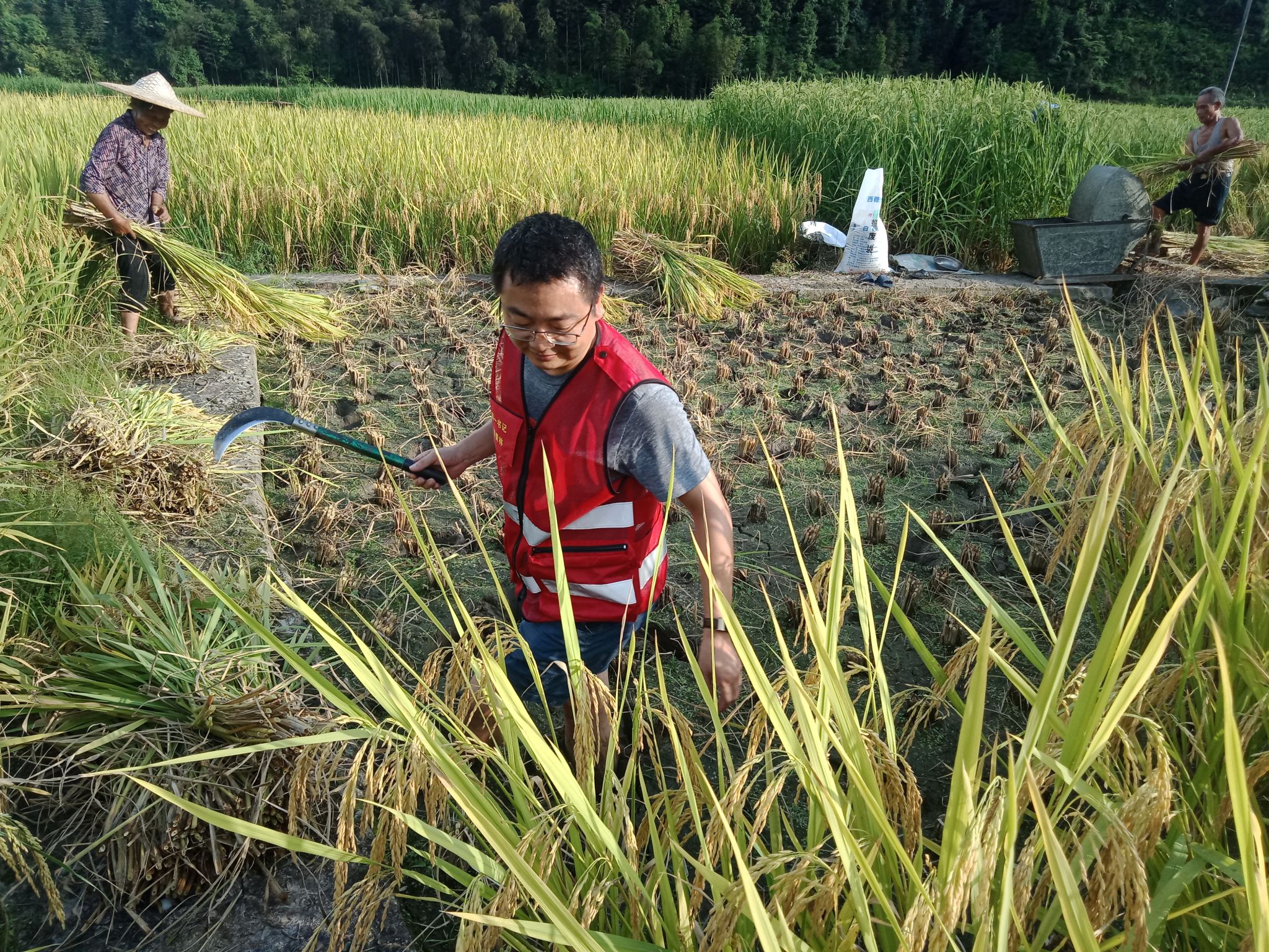 张青林帮困难老人潘玉祥户打谷子