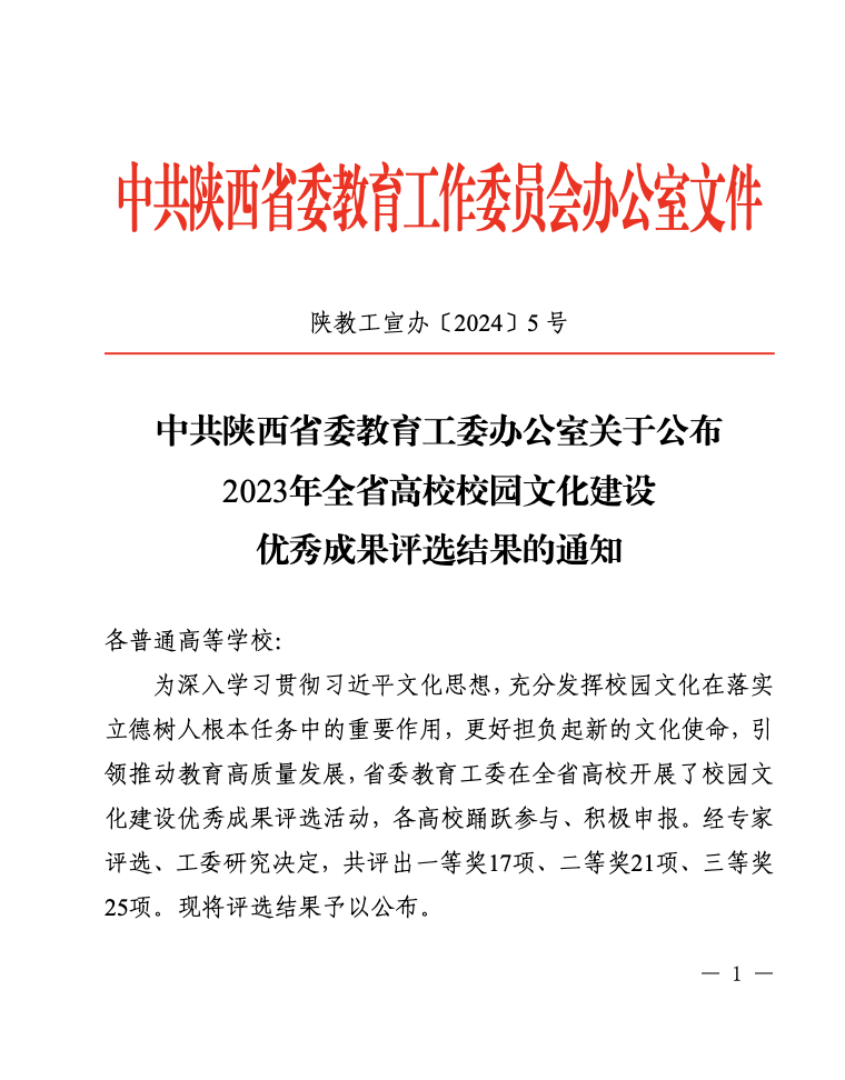 3月13日,经中共陕西省委教育工作委员会评选,2023年全省高校校园文化建设优秀成果获奖名单揭晓(陕教工宣办〔2024〕5号),BEAT365英国官网申报的《以科学家精神主题戏剧涵养“总师型”人才的探索与实践》荣获一等奖。