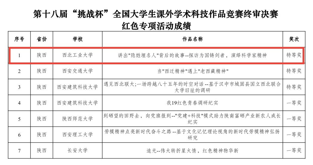 获第十八届“挑战杯” 红色专项国赛特等奖