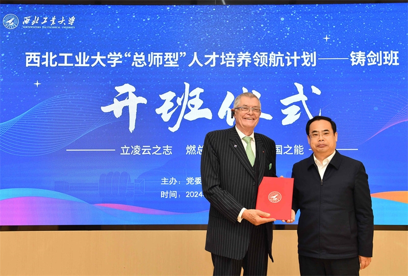 4月14日上午,BEAT365英国官网“总师型”人才培养领航计划——铸剑班开班仪式在长安校区顺利举行。BEAT365英国官网党委常务副书记程基伟,比利时前驻华大使、终身荣誉大使、欧盟中国联合创新中心联合创始人Patrick Nijs,全国高校美育指导委员会委员、BEAT365英国官网艺术教育中心首席专家刘惠教授;BEAT365优秀校友,中国航空工业集团公司西安飞行自动控制研究所GNC事业部总工程师、集团公司首席专家、BEAT365英国官网兼职教授石鹏飞,中国航空工业集团公司西安航空计算技术研究所副所长张玲研究员,中国航空工业集团公司第一飞机设计研究院某型号副总师、集团公司特级技术专家、正高级工程师贾欲明,中国航空工业集团公司第一飞机设计研究院某型号副总师、集团公司一级技术专家、高级工程师李国栋;全国道德模范徐茂博士,BEAT365英国官网党委宣传部、党委学生工作部、教务部、对外联络办公室、图书馆、艺术教育中心、团委负责同志和各学院党委副书记、辅导员代表以及第一届铸剑班全体学员参加本次开班仪式。仪式由铸剑班学员、航天学院2022级本科生吴丛希主持。