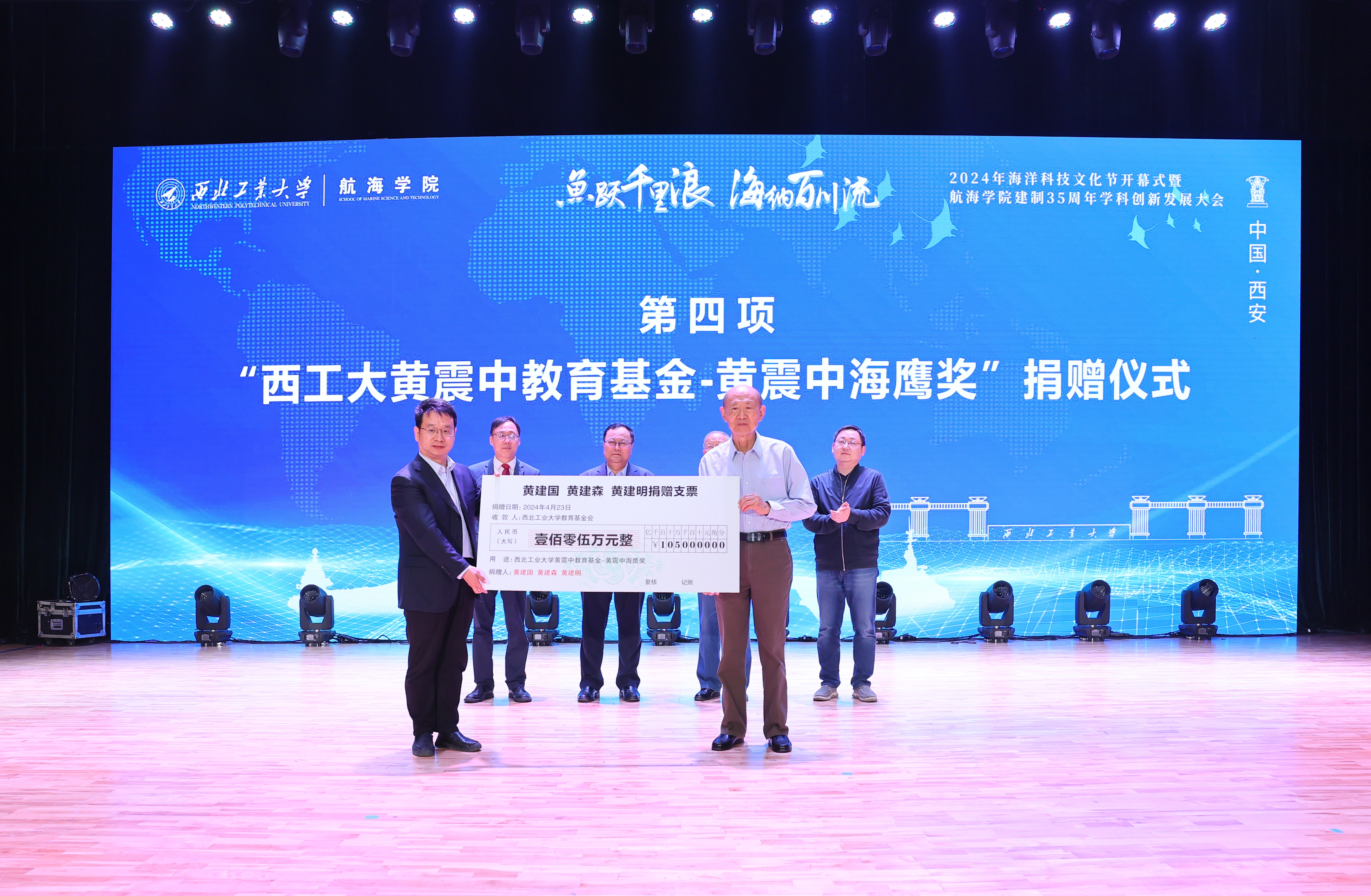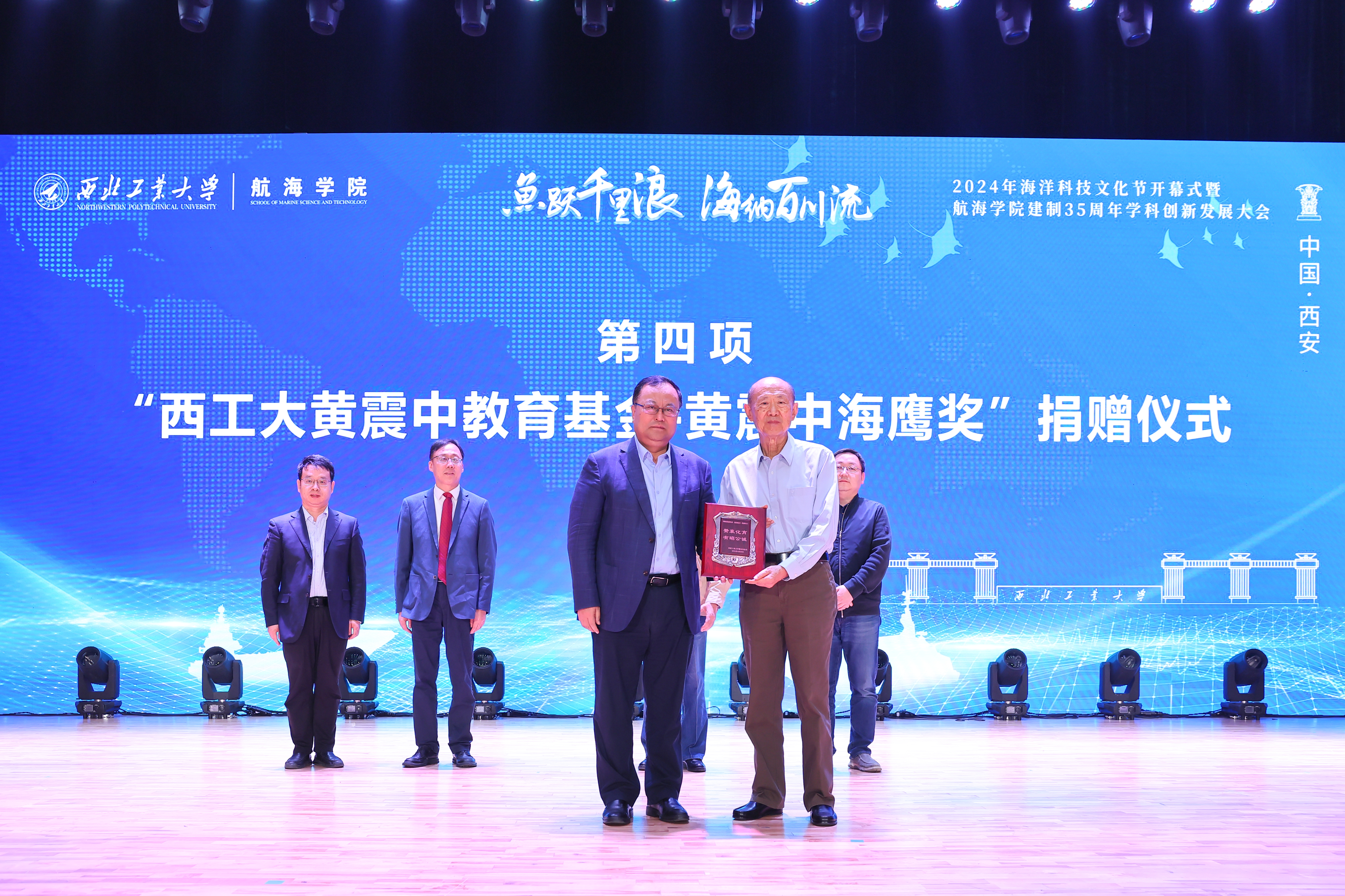 开幕式上举行了“BEAT365英国官网黄震中教育基金--黄震中海鹰奖”捐赠仪式。宋保维、潘光、学校对外联络办公室主任杨铭接受捐赠。