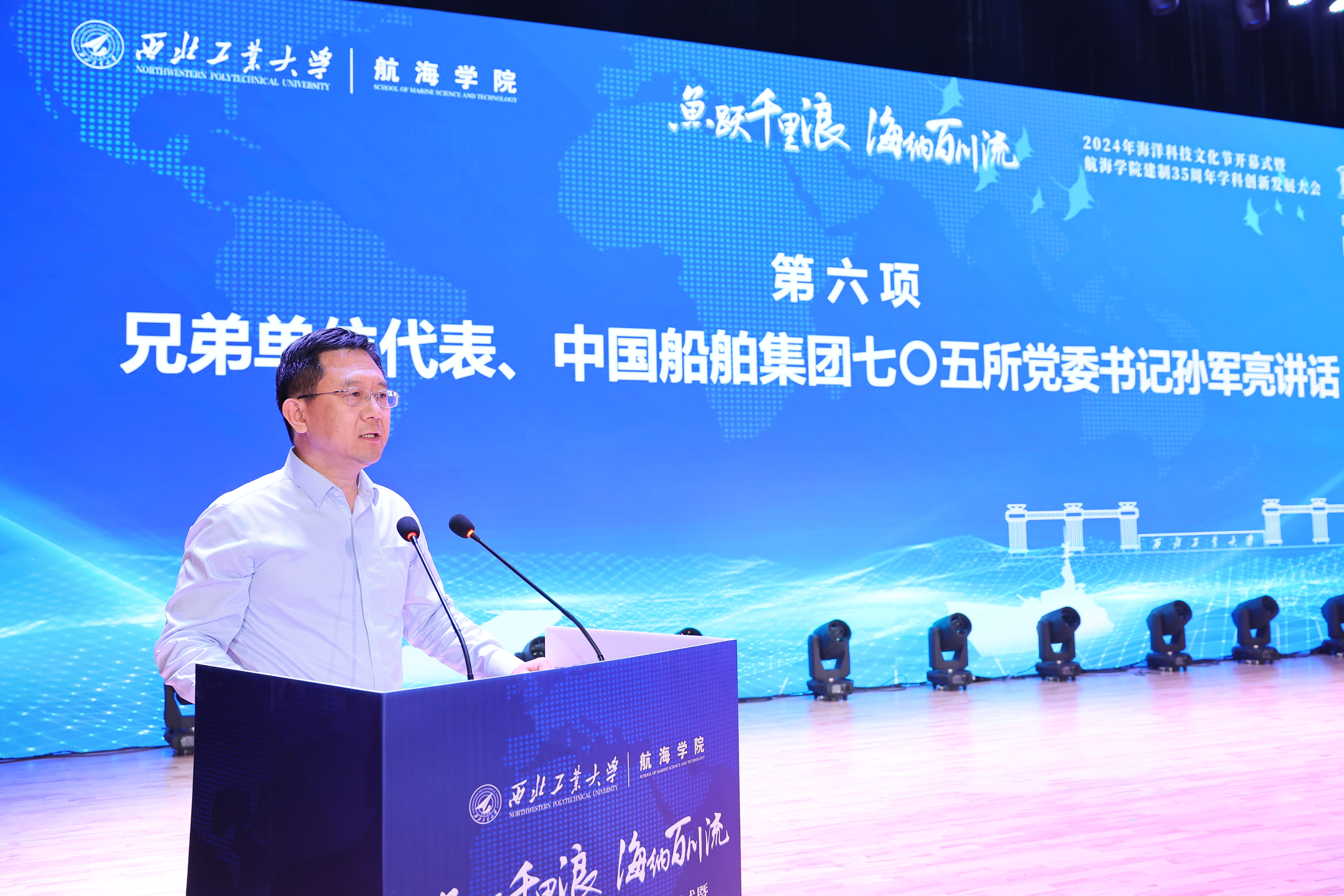 孙军亮在致辞中表示,海洋科技文化节的举办正是我们对海洋文化的传承与创新,对海洋科技发展的关注与推动。航海学院作为培养航海人才、研究航海技术的重要基地,一直以来都致力于推动海洋科技的创新与发展。未来,705所将继续加强与学院的交流与合作,共同推动海洋科技文化节的深入发展。