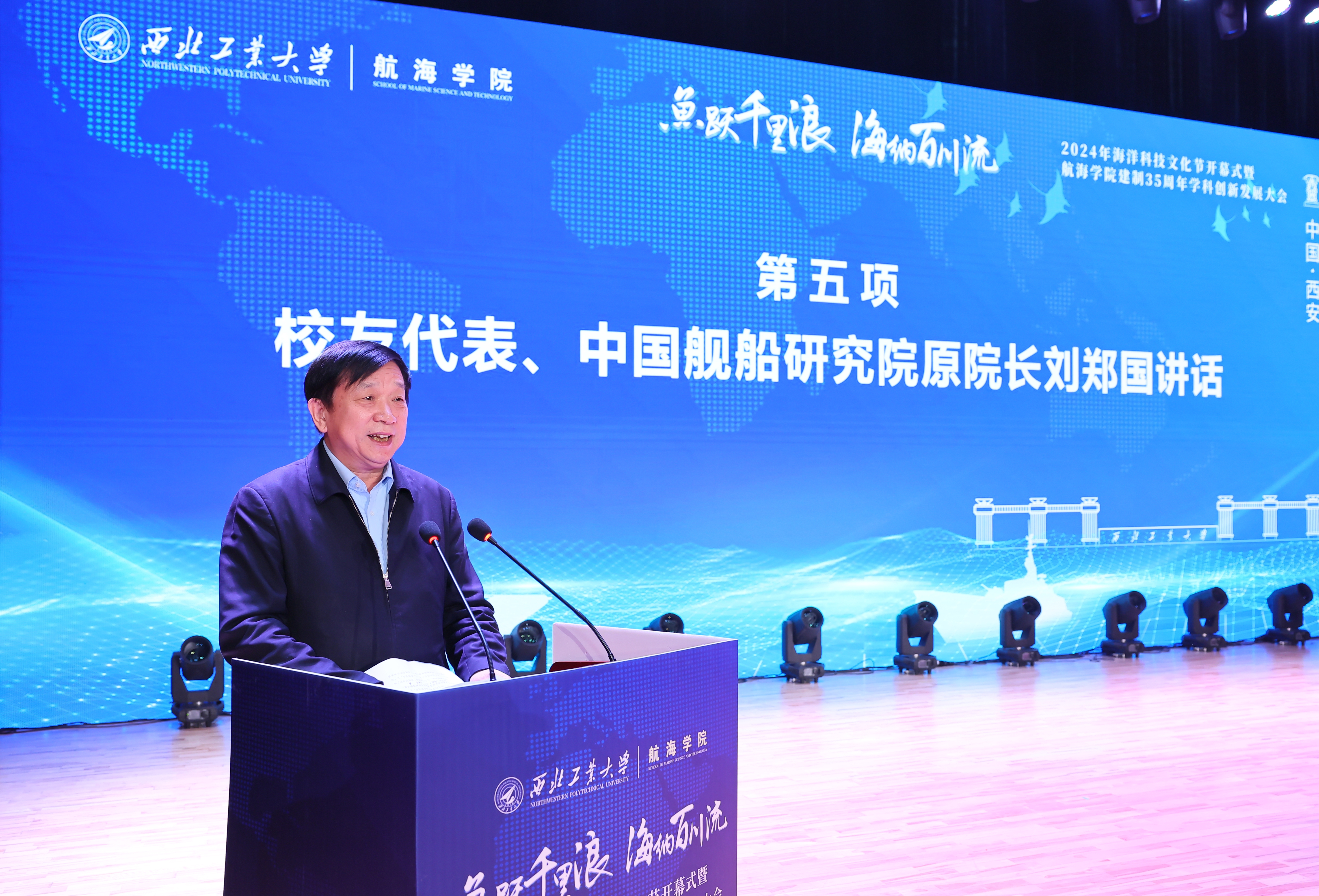 刘郑国在致辞中指出,多年来,航海学院师生齐心协力,以“甘为孺子牛”的奉献精神艰苦奋斗,创造出了许多国家建设急需的标志性成果,培养了一大批国之栋梁。希望大家继续发扬前辈们艰苦奋斗、无私奉献的精神,弘扬西工大“公诚勇毅、三实一新”的优良作风。以“乘长风破万里浪”的豪迈气概,为我国国家海洋战略和国防事业培养更多优秀人才。