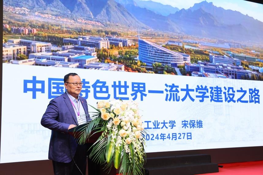 随后,宋保维做题为《中国特色世界一流大学建设之路》主题报告。报告聚焦“三脉融合:一所有底蕴的大学、育人铸剑:一所有使命的大学、继承巩固:一所有担当的大学、创新发展:一所有追求的大学”等关键内容。概要梳理了学校奋力开拓中国特色世界一流大学实践路径的探索和思考。报告系统介绍了学校历史沿革、知名教授和取得突出成就的重点校友等情况。他表示,近年来,学校锚定“127”发展目标和“天下工大 世界三航”的愿景,在人才培养、学科建设、师资队伍、科学研究、校园环境提升等方面取得的诸多进展和重要成果,奠定了学校新一轮“双一流”建设的良好基础。