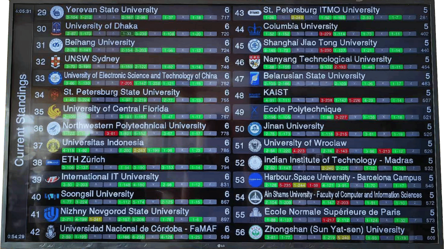 本届世界总决赛由埃及阿拉伯科学、技术和海运学院(AASTMT)承办,原从亚太、东亚、西亚、北部欧亚、欧洲、非洲阿拉伯、北美、拉美八个大区选出最优秀的124所高校代表队晋级参加,每个高校选派1支代表队,包括北京大学、清华大学、上海交通大学、浙江大学、新加坡国立大学、南洋理工大学、麻省理工学院、斯坦福大学、牛津大学、剑桥大学、苏黎世联邦理工学院、慕尼黑工业大学、莫斯科国立大学、圣彼得堡国立大学等均参与了本次大赛。