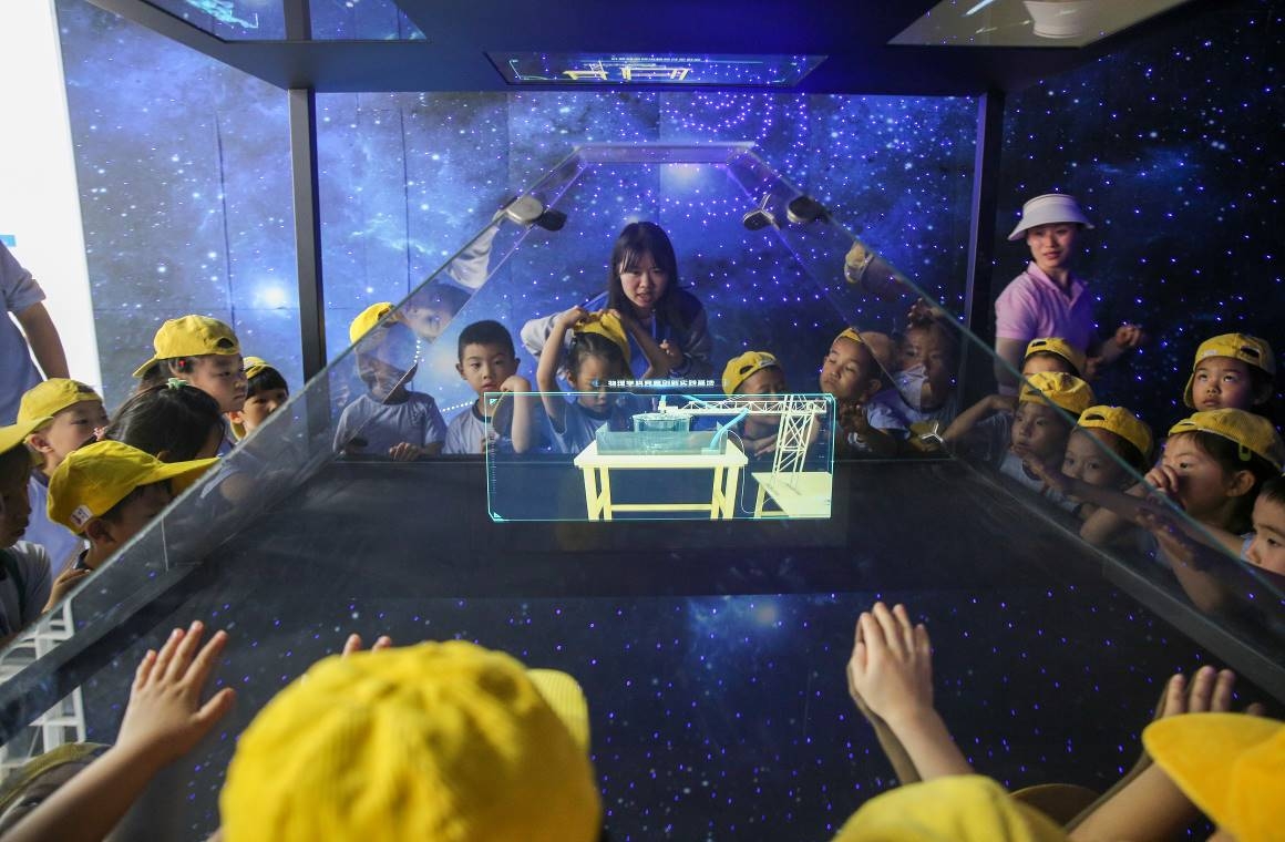 在“总师”型人才培养展馆里,我们听讲解员老师介绍“总师”的故事,通过动静结合、多媒体手段等形式了解西工大教育实践成果。如何成为超级厉害的“总师”?通过讲解和体验,我们明白了只要好好学习,长大了也能像他们一样厉害!