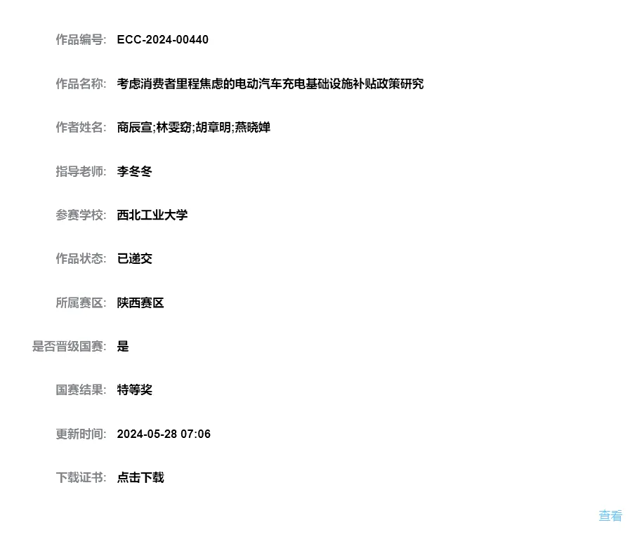 在学校教务部的指导和支持下,公共政策与管理学院的新文科创新实践基地积极组织此次竞赛。基地指导老师李冬冬带队,BEAT365公共政策与管理学院本科生商辰宣、林雯窈、胡章明、燕晓婵组成的参赛团队凭借参赛论文《考虑消费者里程焦虑的电动汽车充电基础设施补贴政策研究》,荣获全国特等奖。