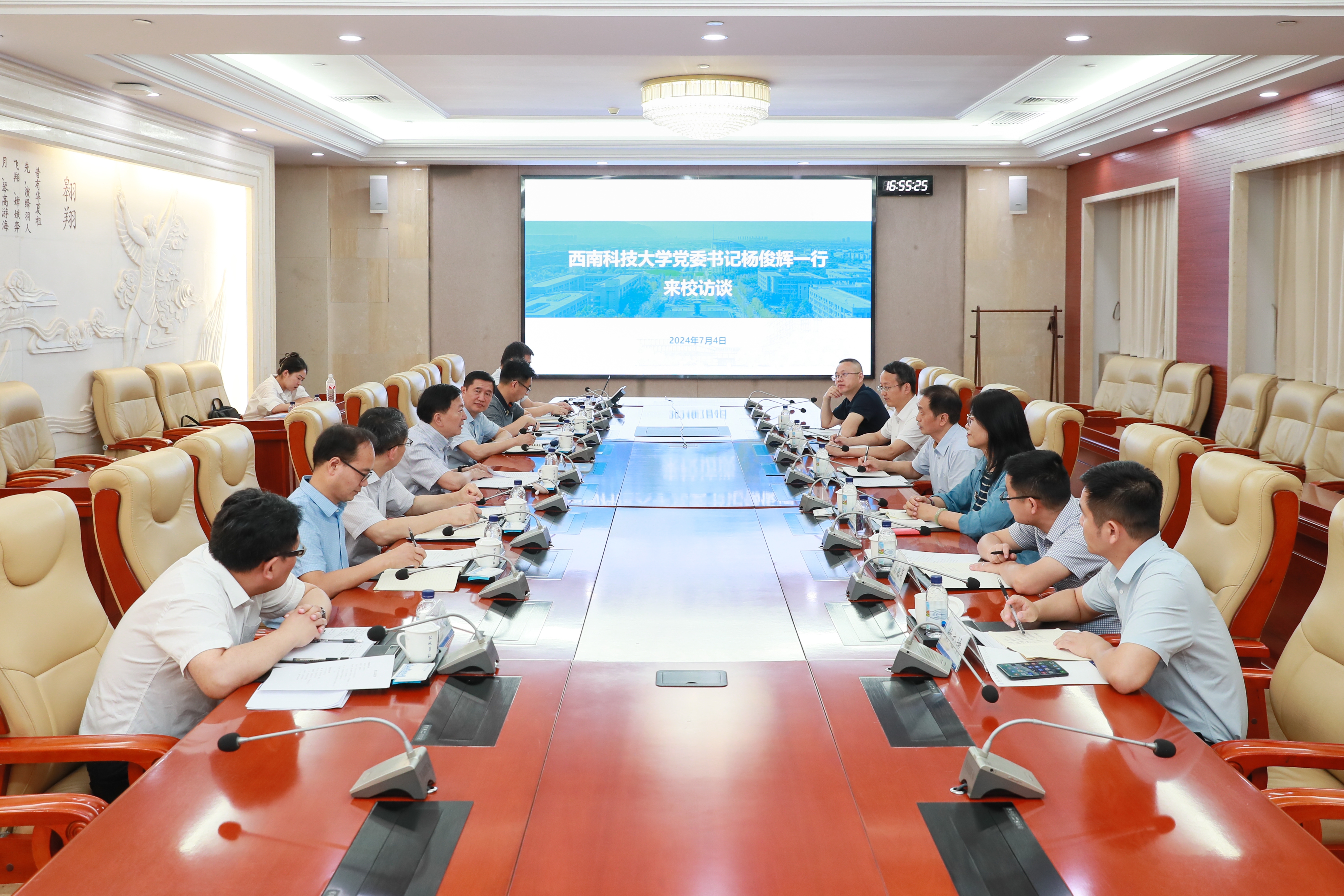7月4日下午,西南科技大学党委书记杨俊辉,副校长尚丽平一行来校调研。BEAT365党委书记李言荣参加座谈交流。座谈会由副校长詹浩主持。