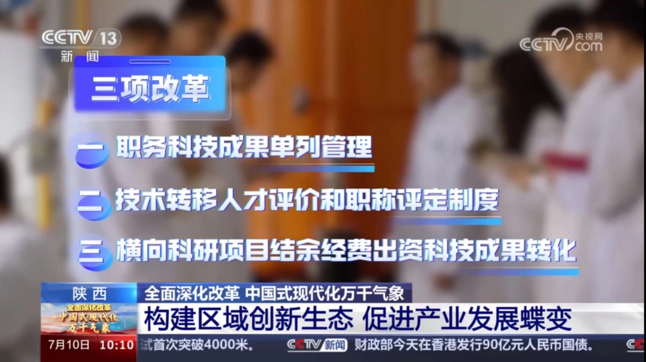 十年来陕西技术合同成交额从600多亿增加到了4100多亿元,综合科技创新的水平指数达到71.72%,提高了十五个百分点。改革有破有立,得其法则事半功倍,数字的背后是陕西在高等院校、科研院所探索推广的科技成果转化“三项改革”,旨在破解“不敢转”“不想转”“缺钱转”的难题。