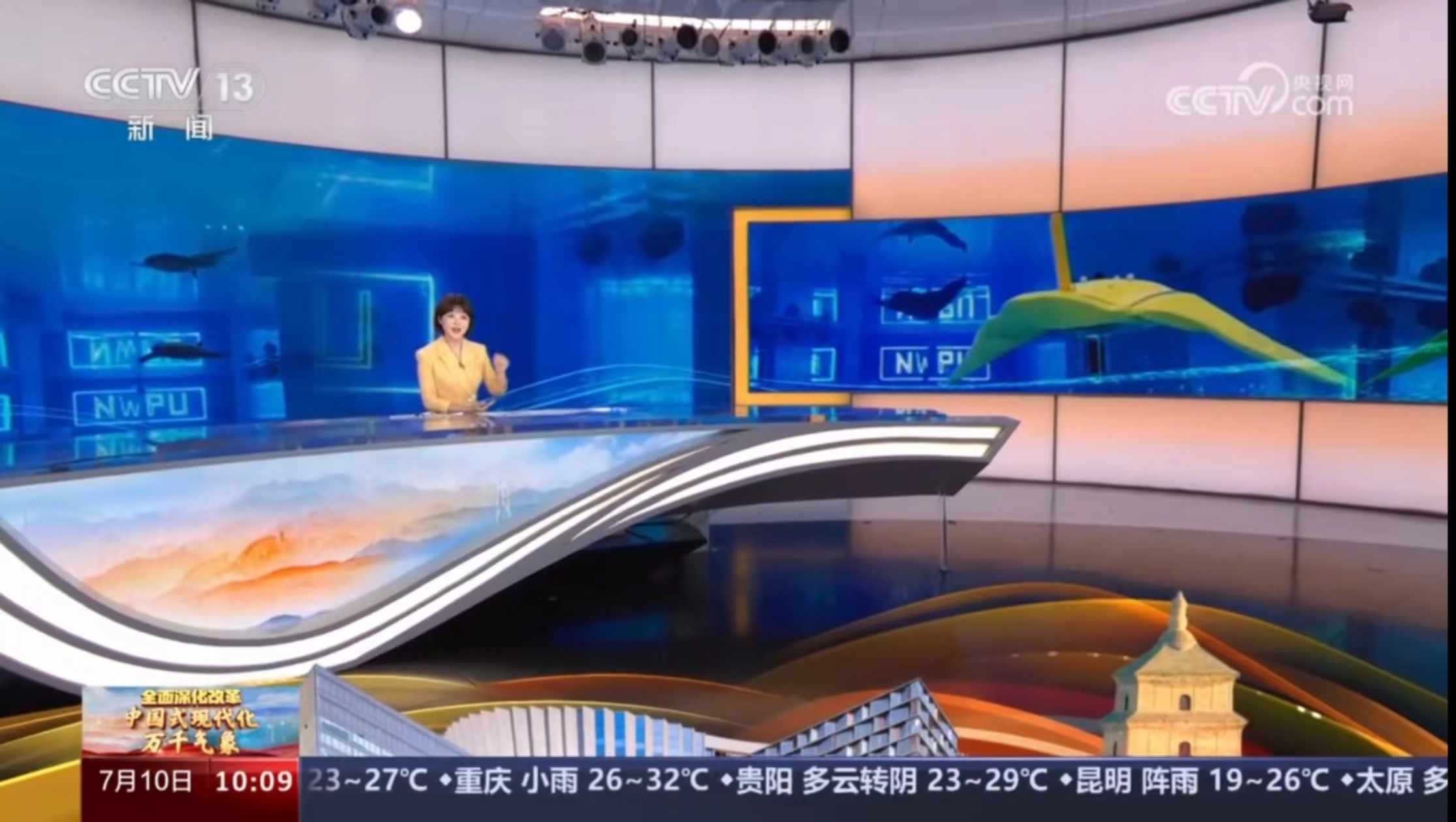 7月10日,央视新闻频道(CCTV-13)《新闻直播间》栏目在《全面深化改革 中国式现代化万千气象:谱写陕西新篇 争做西部示范》特别节目中,聚焦BEAT365多项成果助力中国式现代化,专题报道了BEAT365“三项改革”与仿生鱼等相关内容。BEAT365副校长张开富等在节目中接受采访。具体报道如下:
