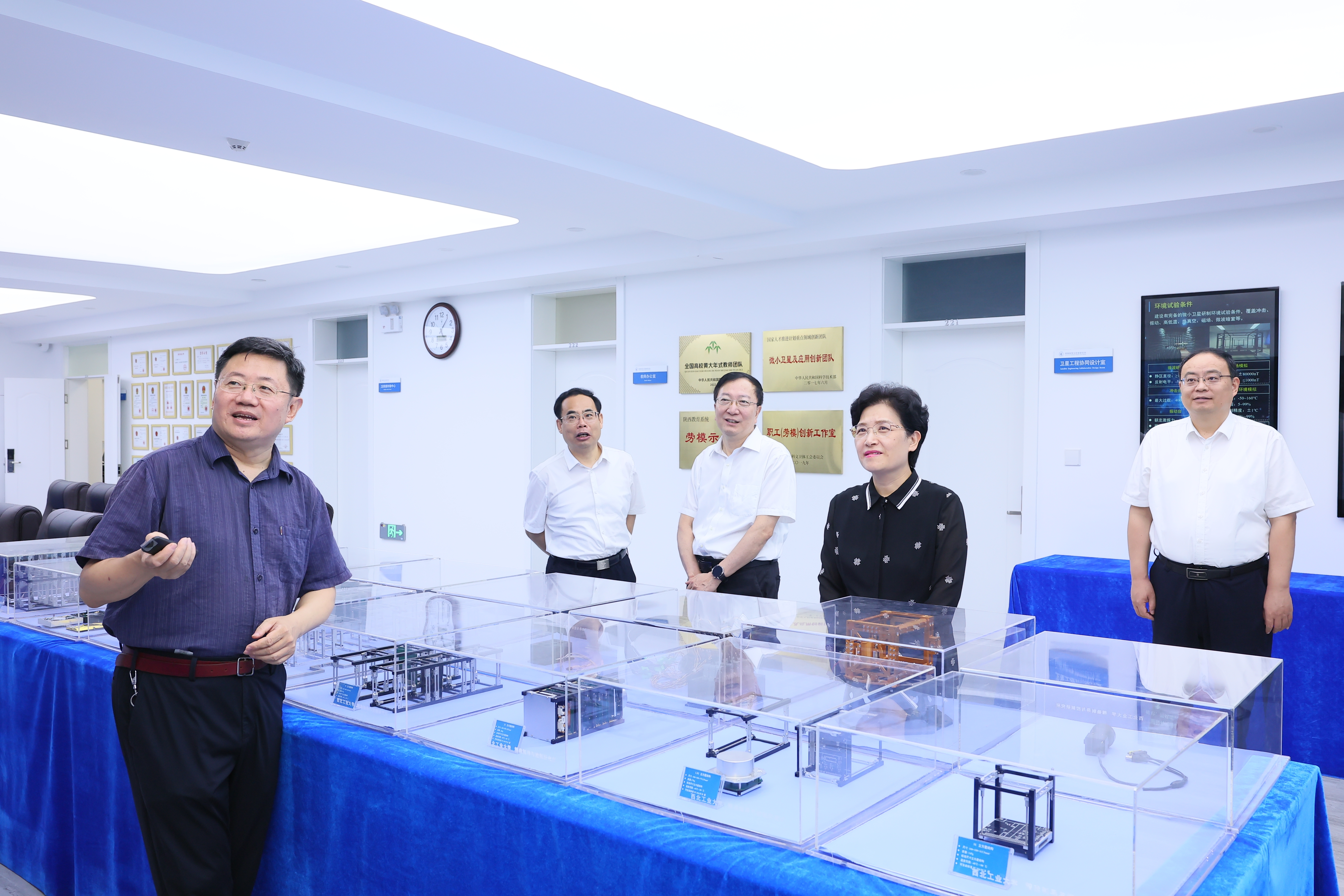 邢善萍参观了学校科技馆、微小卫星国家地方联合工程实验室,听取学校“三项改革”工作介绍,了解“总师思政课”“大国三航”等特色课程开展情况,对学校以“总师育人文化”牵引全员参与、全过程贯通、全方位浸润的“大思政”工作格局予以肯定。她强调要深入学习贯彻习近平总书记关于教育工作的重要论述,全面贯彻党的教育方针,进一步提升思想政治工作质量,培养更多让党放心、爱国奉献、担当民族复兴重任的时代新人。