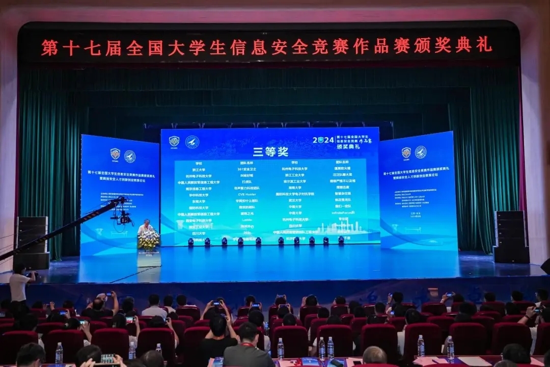 颁奖典礼由教育部高等学校网络空间安全专业教指委副主任俞能海主持。中央网信办网络安全协调局安全技术产业处副处长王博,工业和信息化部网络安全管理局网络安全处处长袁春阳,太仓市委常委、宣传部部长、统战部部长查焱等出席活动并先后致辞。教育部高等学校网络空间安全专业教学指导委员会秘书长封化民宣读比赛结果。江苏省委网信办副主任陈智,苏州市委宣传部副部长、市委网信办主任陈雪嵘以及有关高校校领导、教指委委员等出席上述活动。