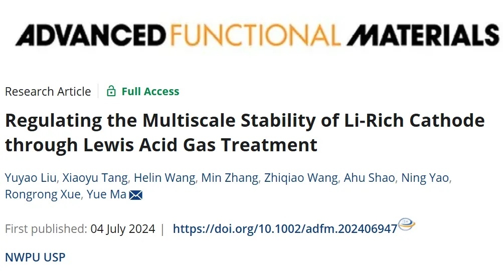 马越课题组提出利用路易斯酸气体对富锂锰层状氧化物进行多尺度改性策略,从而以增强电极的循环耐久性和高温耐受性。通过气相处理在LLO电极上构建了一个连续通畅的锂离子传输路径,与未经处理的电极相比,Li+扩散率提高了五倍。值得注意的是,改性LLOs正极在55 ℃的高温下,自放电率降低了71.4%,在动态恒电流循环期间,晶格收缩(Δc/a)减少了16%。通过在袋装电池模型中将锂箔与改性LLO正极配对,制备了0.2 Ah的软包电池,其能量密度/功率密度达到了429.8 Wh kg-1/773.7 W kg-1。该文章以“Regulating the Multiscale Stability of Li-Rich Cathode through Lewis Acid Gas Treatment ”为题发表在国际知名期刊Advanced Functional Materials(IF=18.5)上。本文第一作者为材料学院纳米能源材料研究中心硕士研究生刘昱瑶。