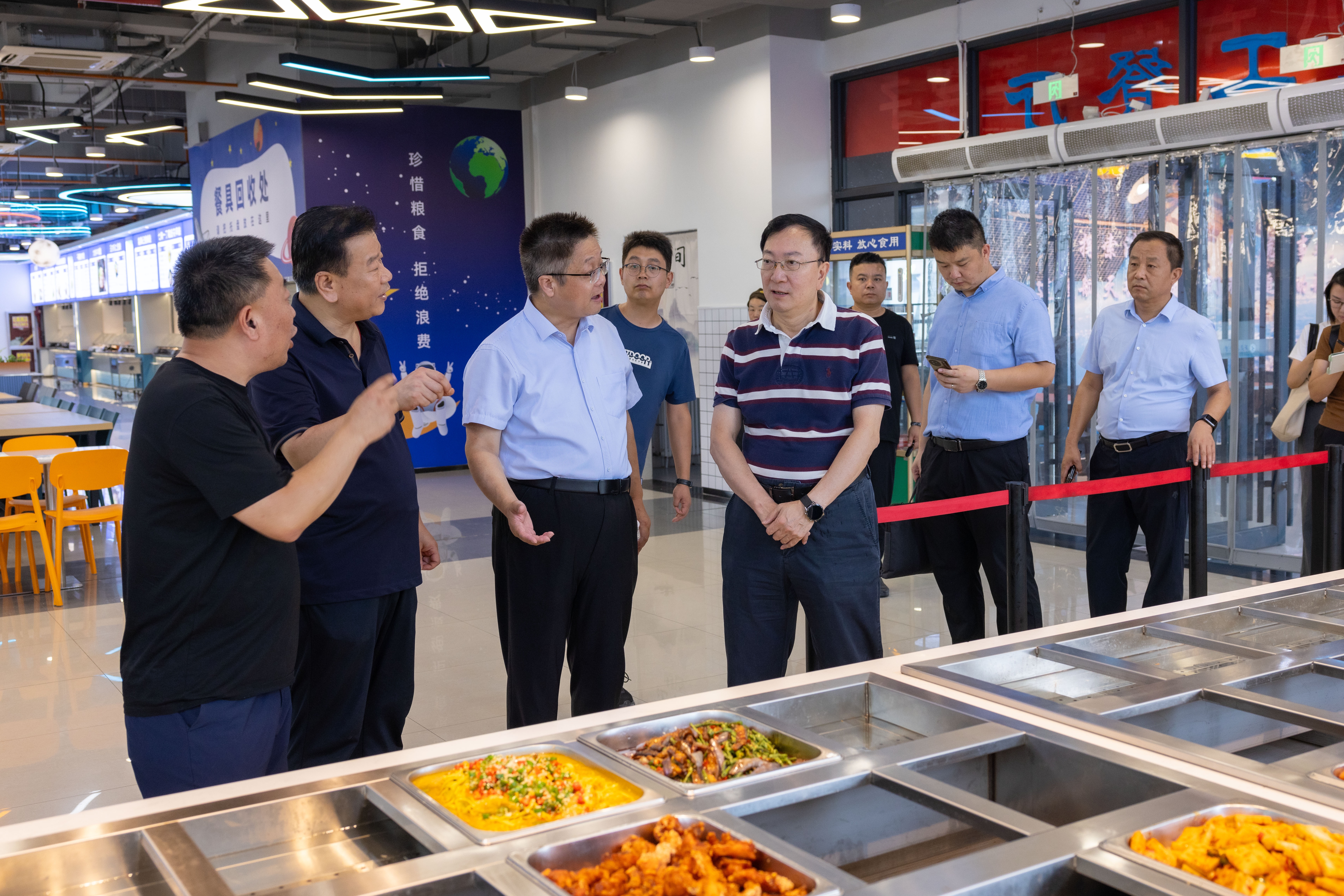 李言荣一行还检查了相关服务保障场所。在海天苑餐厅,李言荣检查了改造完成的二楼露台和重新升级的三楼食堂,听取了海天苑三楼延时餐厅夜间营业、新设自助就餐区运行情况。