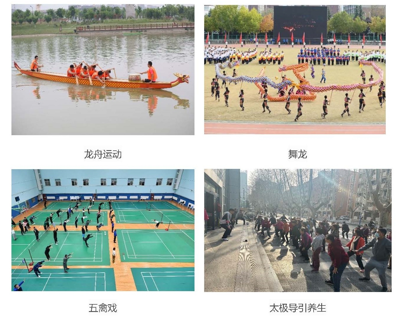 (五)以文化建设赋能,彰显体育魅力。在原有中国式摔跤与舞龙运动课程的基础上,先后开设龙舟运动、太极拳、太极导引养生、国学之武学等“传统文化+”体育课程,弘扬中华传统体育文化,其中端午节龙舟课采访,被人民日报、陕西10余家大型媒体宣传报道。创新体育文化,提升翱翔训练馆、翱翔体育馆等场馆体育文化氛围,结合职工小家建设、教师荣休、教师节、中秋节等打造“家文化”,获2022年度“陕西省教科文卫体系统优秀职工小家”称号。组织“四个一”访谈活动,获2023年学校“读懂中国”作品三等奖2项。持续打造校园马拉松、体育文化节等西工大体育运动品牌,努力营造充满运动活力、激发拼搏精神的西工大校园体育文化氛围。